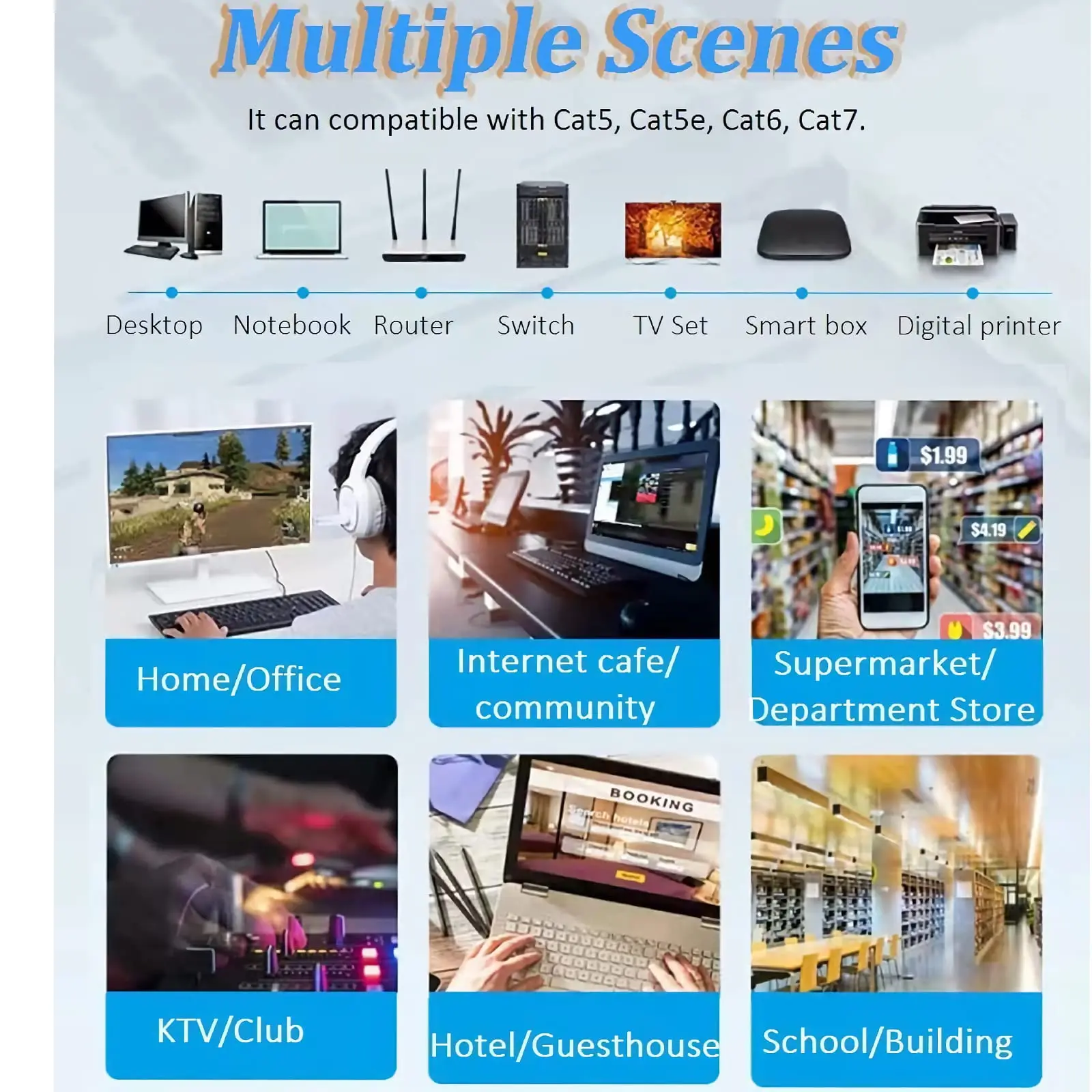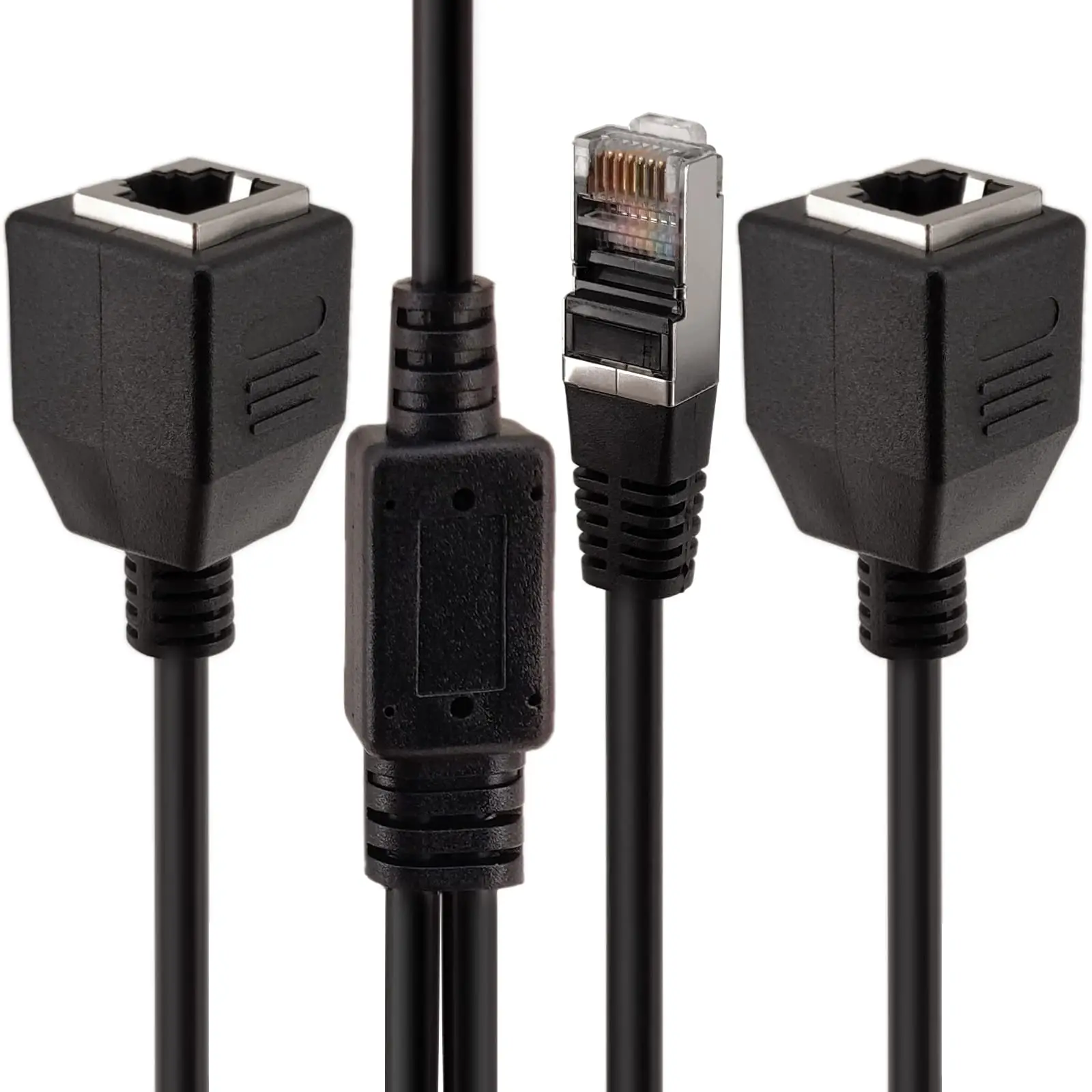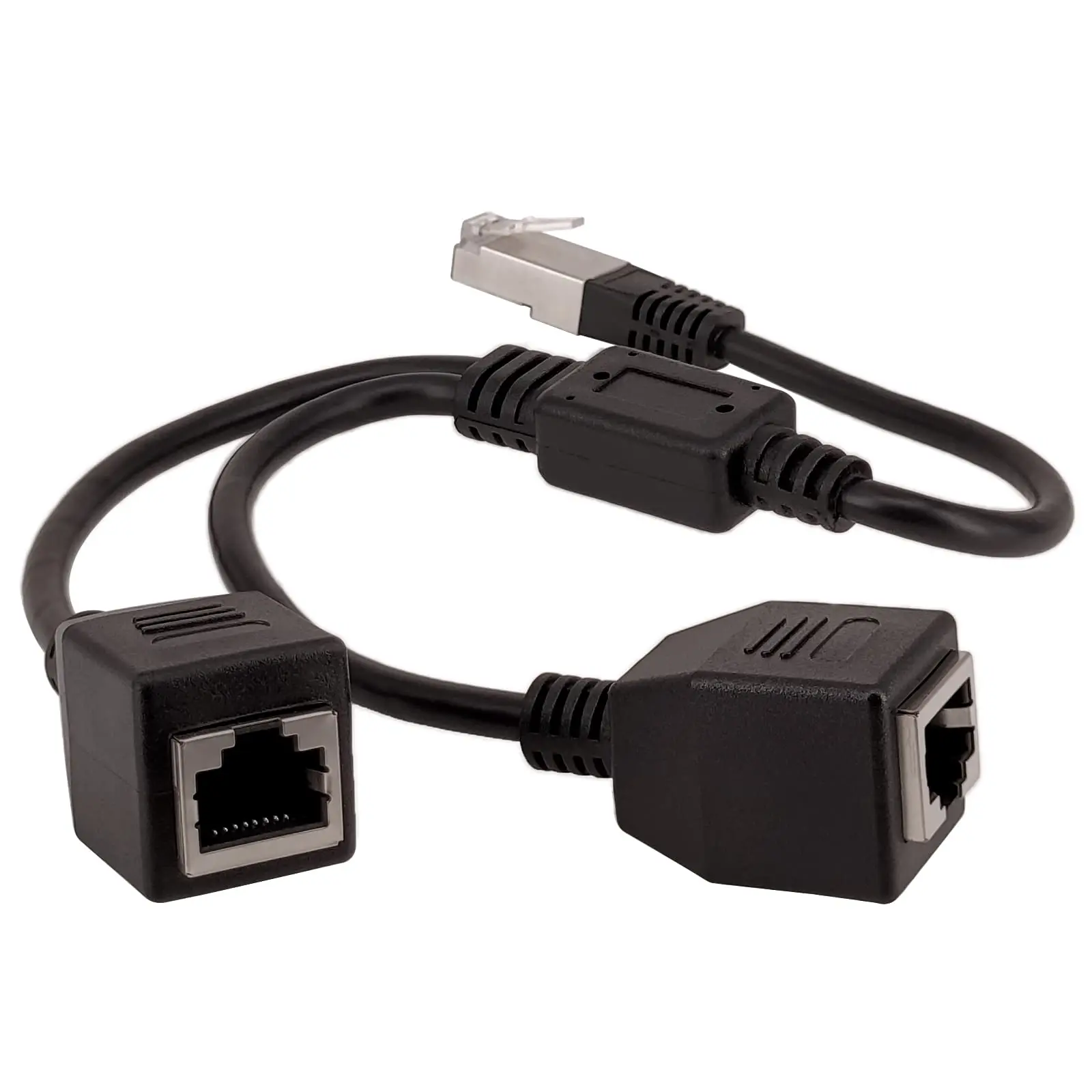 Macho a 2 Hembra RJ45 Splitter Ethernet 2-en-1 Adaptador de Internet Separador de cables