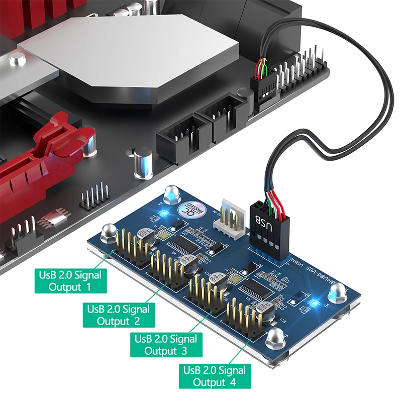 Comprar Adaptador divisor de extensión de cabezal de 9 pines USB 2,0, convertidor USB2.0 de 9 pines a 4 puertos, multiplicador de Puerto Hub con Base magnética