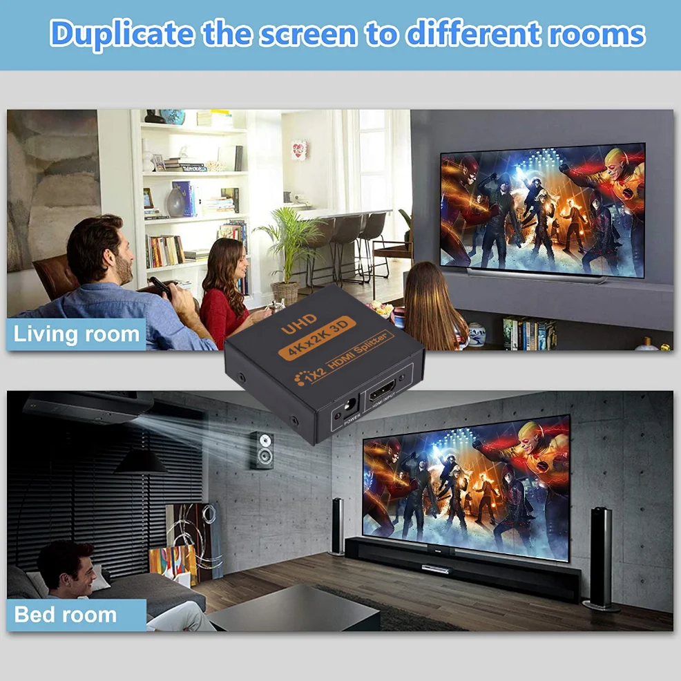 1. El divisor HDMI 1x2 es un concentrador flexible para varias pantallas. Puede conectar dos asignadores HD para formar un asignador más grande. 2. El divisor HD puede conectar la entrada de la fuente de señal HDMI al divisor con un solo cable HD (que debe comprarse por separado). 3. Este divisor HD admite señales de audio y vídeo. Rendimiento del productoConecte varios monitores HD a una fuente de señal de vídeo de 1 canal para una visualización simultánea.