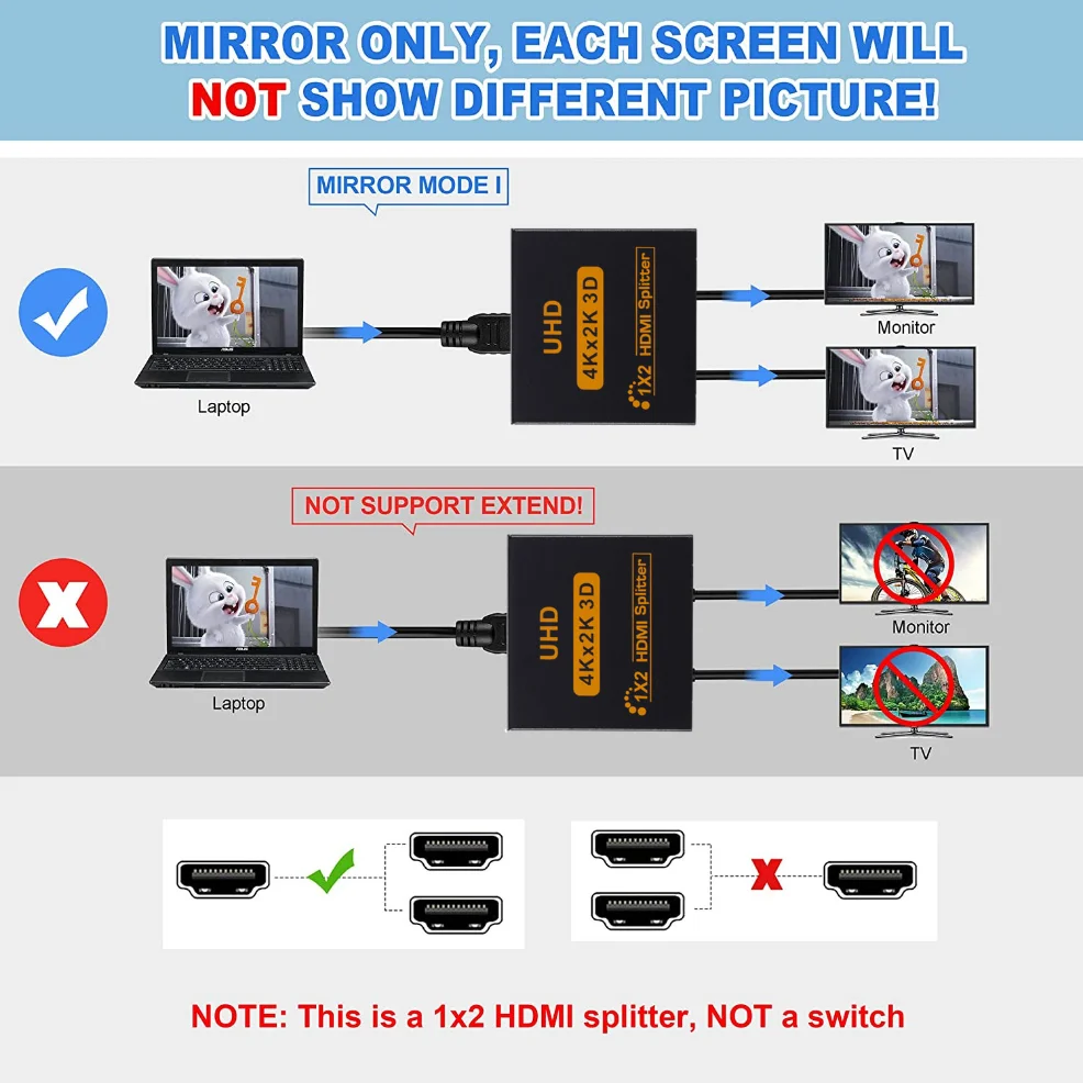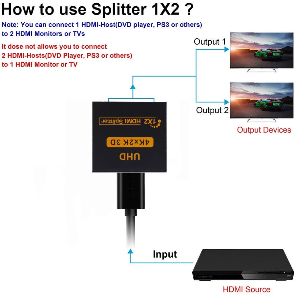 Comprar Adaptador divisor HDMI 4K de 1 a 2 vías, adaptador hembra a HDMI, 1 en 2 salidas, divisor HDMI para Xbox, PS4, DVD, HDTV, PC, portátil