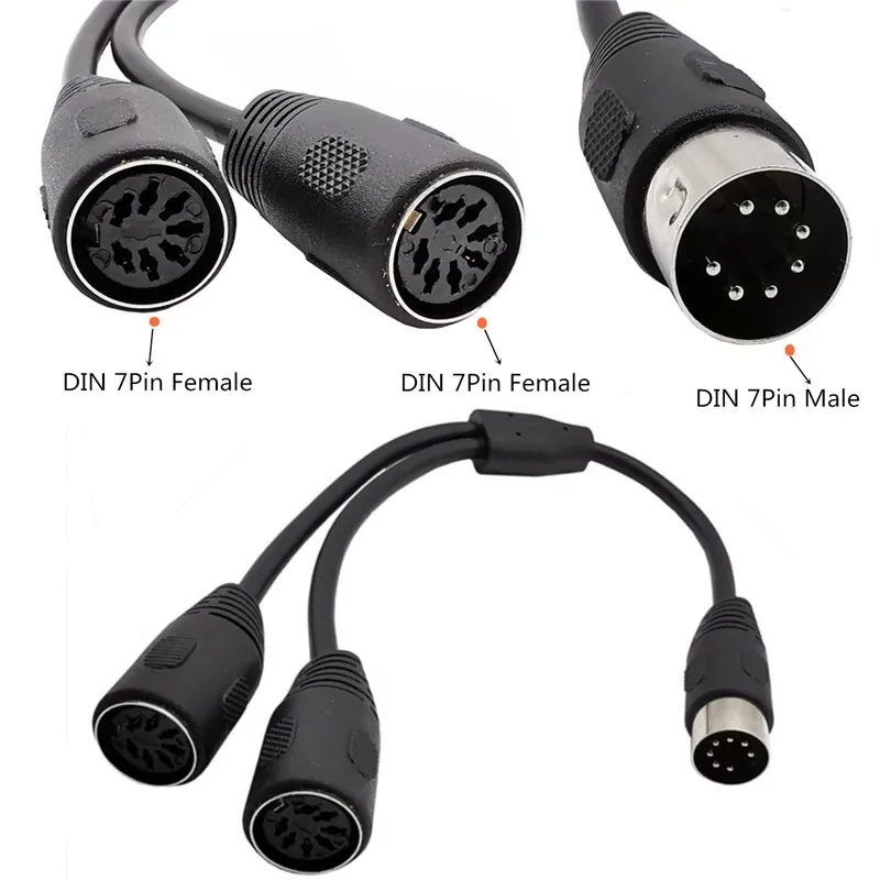 Adaptador Y divisor MIDI DIN de 7 pines, Cable macho de 7 pines a 2 hembra, 0,3 m, 1 enchufe macho a 2x hembra