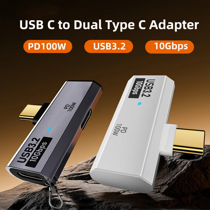 Adaptador divisor OTG 2 en 1 PD100W USB3.2 10Gbps USB C a doble tipo C adaptador convertidor de carga rápida para teléfono portátil auriculares