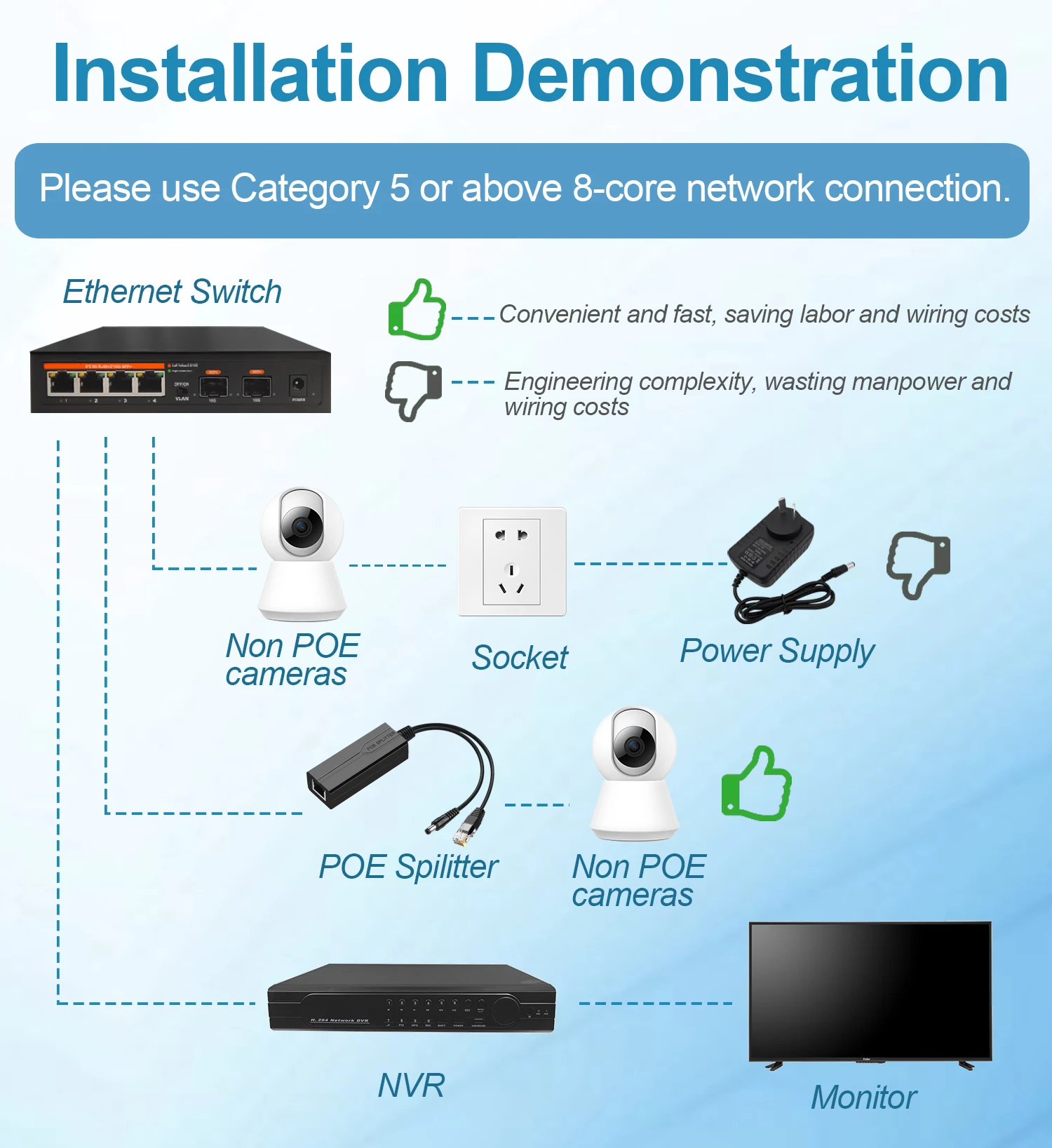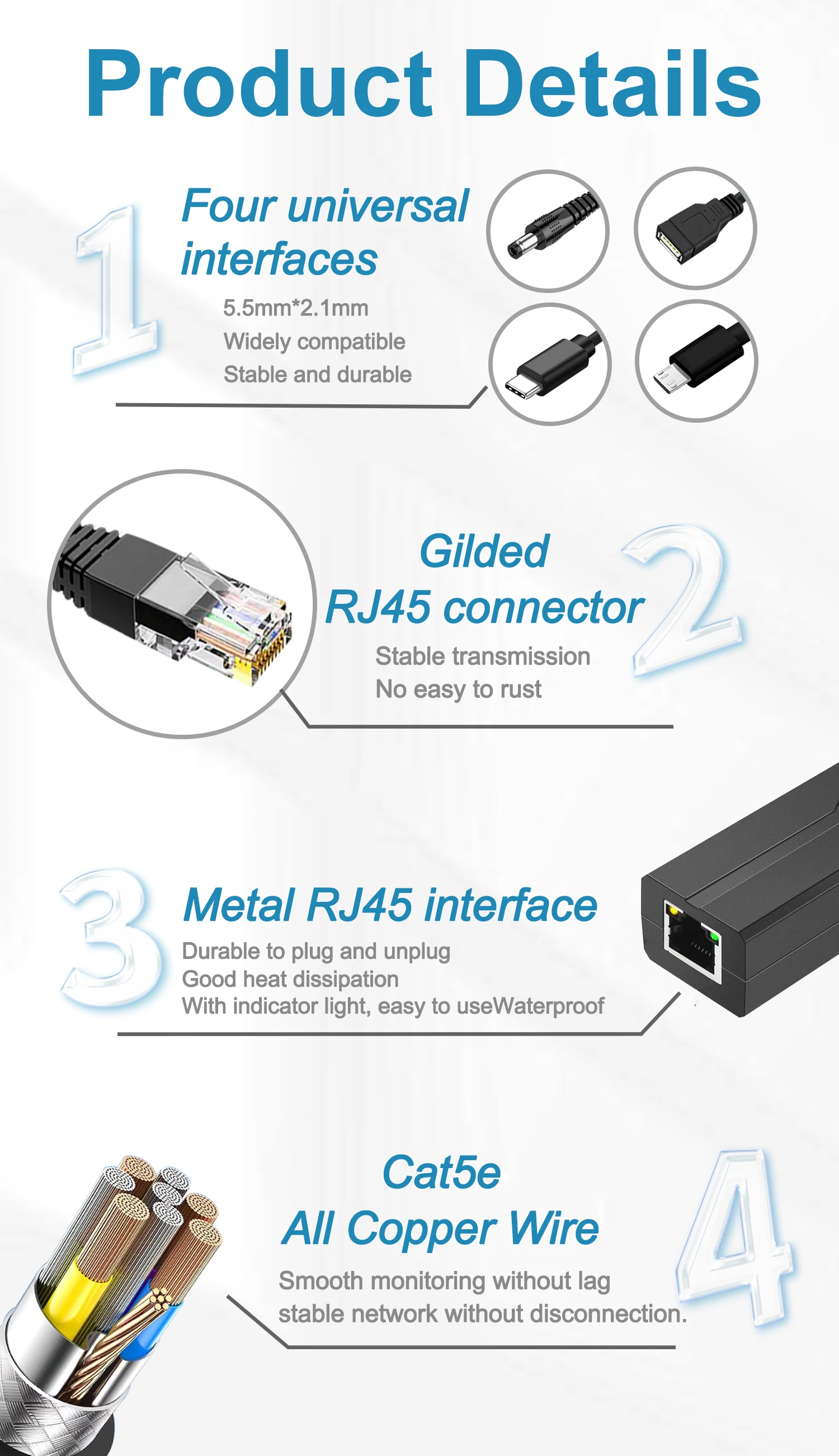 5.El divisor PoE adopta un diseño compacto, fácil de instalar y usar.