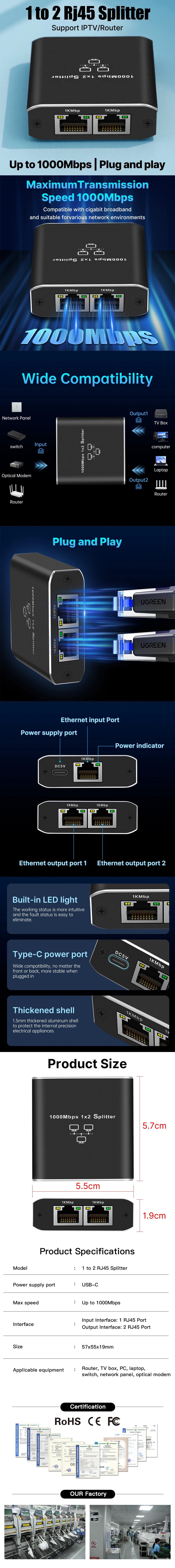 ⚡ 【Expansión de puerto 1 a 2】 ¡Convierta un único puerto Ethernet RJ45 en dos, compatible con transmisión de alta velocidad de 1000 Mbps para enrutadores, IPTV, PC y más!