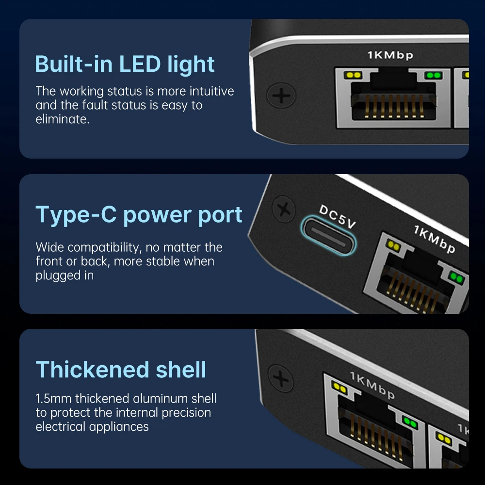 🚀 【Zero Speed Drop】 El chipset de grado Gigabit, compatible con cables Cat5e/Cat6, garantiza un ancho de banda completo sin demoras.