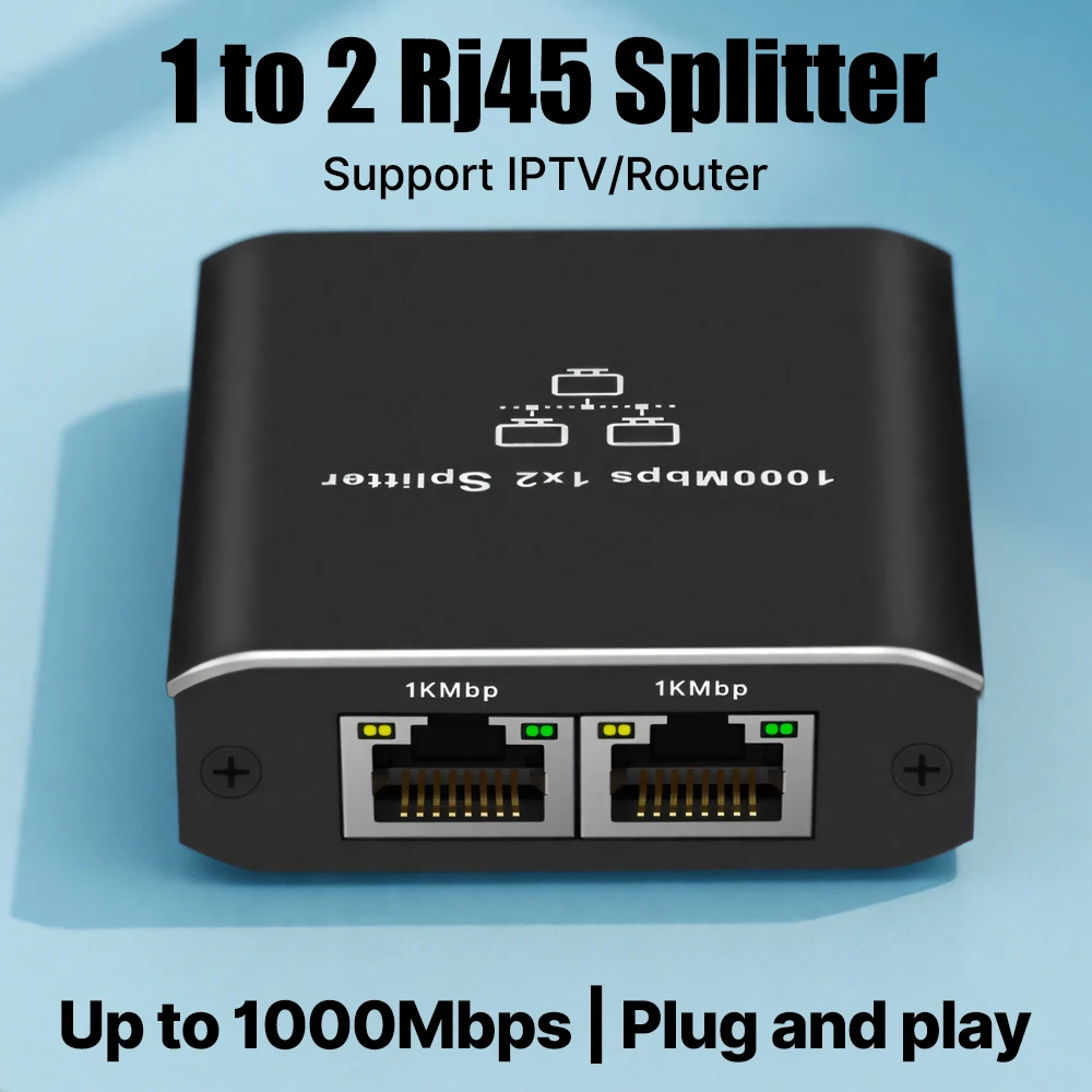 Comprar Adaptador divisor RJ45 de 1 a 2 puertos, Cable de red LAN Gigabit Ethernet de 1000Mbps, conector de Internet de alta velocidad para IPTV/enrutador/PC