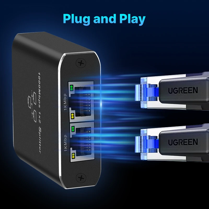 Adaptador divisor RJ45 de 1 a 2 puertos Gigabit Ethernet 1000Mbps