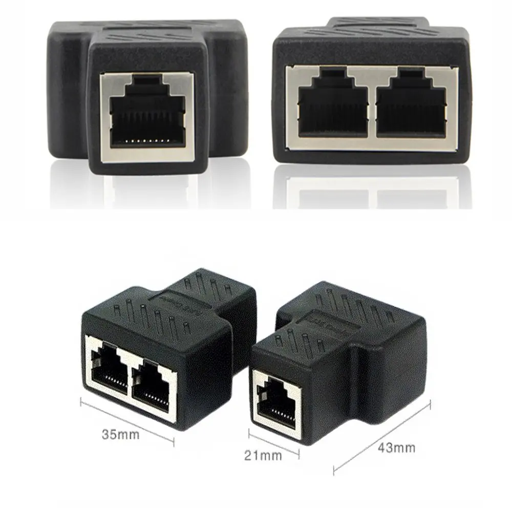 Comprar Adaptador divisor RJ45 de 1 a 2 puertos USB hembra Dual a RJ45, extensor de enchufe 8P8C, interfaz LAN, Conector de enchufe Ethernet, 2 uds.