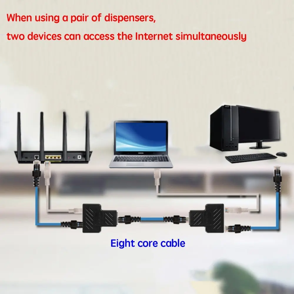 Adaptador divisor de red RJ45 1 hembra a 2 hembra, para cables de red de enchufe modular 8P8C Cat 5 / Cat 5E/Cat 6 / Cat 7. No solo puede ayudarle a cambiar entre diferentes ordenadores, sino que también puede actuar como extensor de cable de red, lo que le permite conectar distancias más largas.