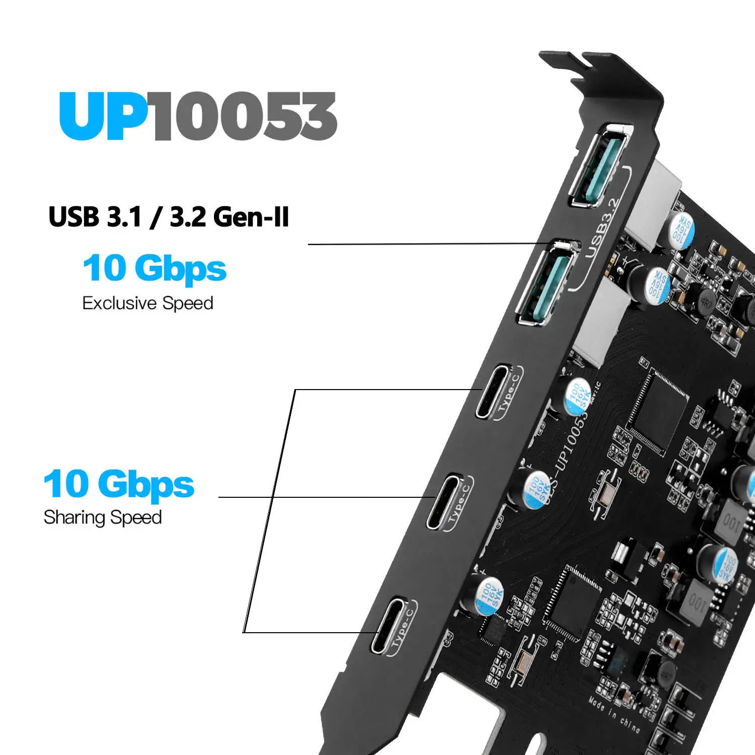 Comprar Adaptador divisor de supervelocidad para Windows, tarjeta PCI-e USB 3,2 de 20 Gbps Gen 2 con 5 puertos (USB-A -USB-C)