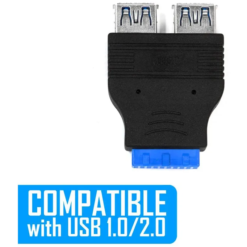 Comprar Adaptador divisor USB 3,0 de 2 puertos USB tipo A hembra a conector de extensión de cabezal de placa base de 20 pines