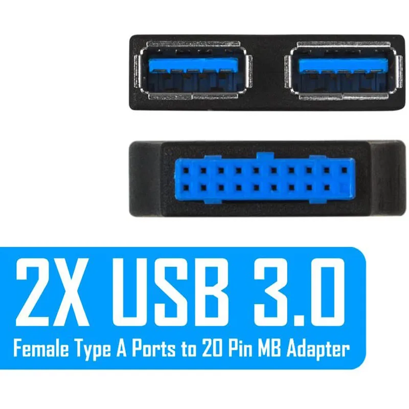 Especificación:Dos puertos USB 3.0 hembra tipo A a adaptador MB de 20 pines