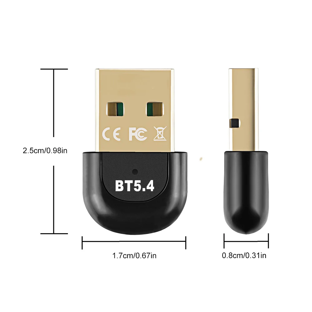 5.4 Bluetooth dual mode dual canal, compatible con las especificaciones Bluetooth 2.0, 3.0, 4.0, 5.0, 5.1 y 5.3.Los chips inteligentes de bajo consumo y los transceptores de radiofrecuencia proporcionan aplicaciones Bluetooth flexibles y potentes con menor latenciaAdmite nivel de potencia Cass2 distancia de 20 metros (en ambiente abierto)Sistemas operativos compatibles: Windows 8.1, 10, 11 (sin controlador, plug and play) Windows 7 se puede instalar con controladores.Protocolos compatibles: HFP/HSP (teléfono/auriculares manos libres) A2DP/ AVRCP (música estéreo) HID/HOGP (teclado y mouse)/ACC.Smartphones Android, etc.Versión de Bluetooth: 5.4 (BLE bajo consumo de energía, baja latencia)Distancia de transmisión: 20 metros (entorno sin barreras)Protocolos de soporte: A2DP, HSP, AVRCP, HID, ACC, etc.Admite interfaz USB2.0/3.0Admite la conexión simultánea de múltiples dispositivos (se pueden conectar hasta 7 dispositivos)Temperatura de trabajo -20 a 70℃Color: NegroMaterial: ABSContenido del paquete:1 adaptador USB Bluetooth.