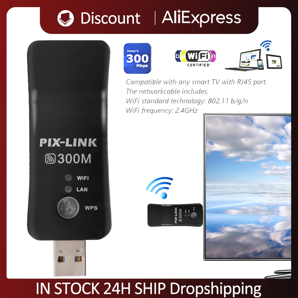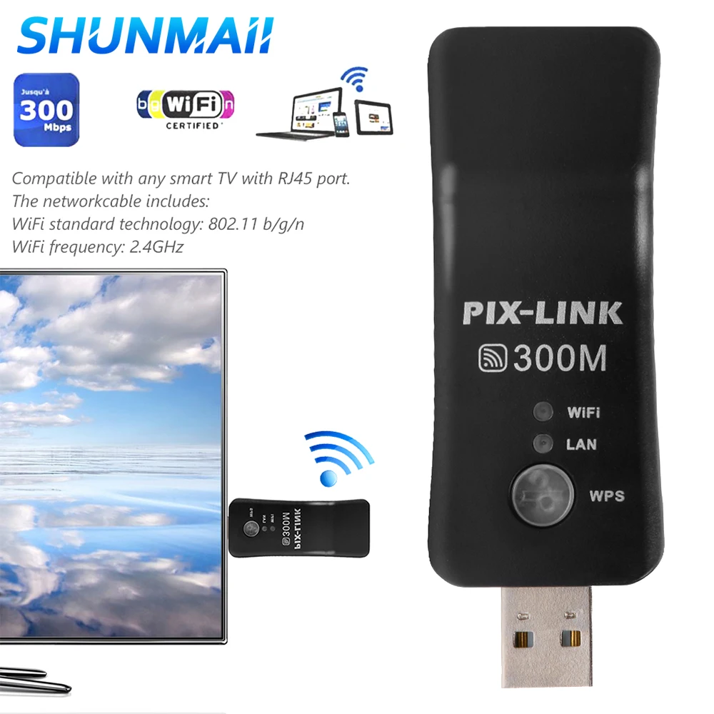 Comprar Adaptador Dongle USB WiFi para TV, receptor de tarjeta de red inalámbrica de 300Mbps, repetidor RJ45 WPS, para Samsung, Sony, Smart TV stick