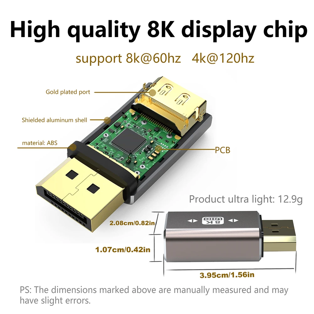 Característica:1.DP1 de alta definición.4 adaptadores:Disfrute de imágenes de alta definición con nuestro adaptador Displayport a Displayport, siguiendo los estándares DP1.4.Con su soporte para una resolución de hasta 8K con una frecuencia de actualización de 60 Hz, este adaptador garantiza una experiencia de visualización fluida, cristalina e inmersiva para los usuarios.