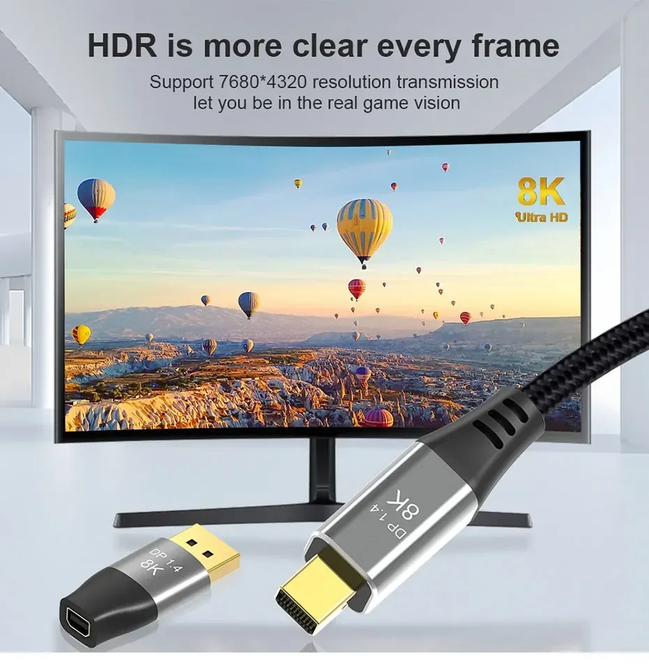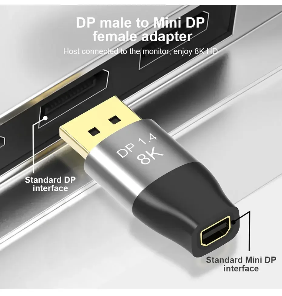 Comprar Adaptador DP a Mini DP 8K 60Hz 4K 144Hz 2K 165Hz bidireccional macho Displayport 1,4 a hembra conector convertidor Mini Displayport
