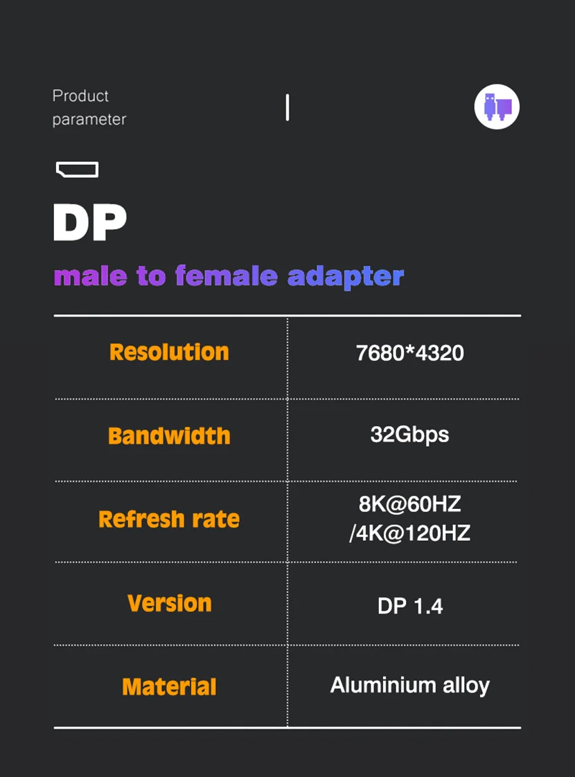 Variante: Color:DP to miniDP 8K60HZ Length:1PCS Ships From:China