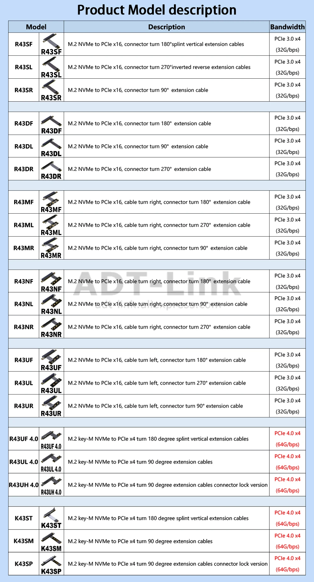 R43UF 4,0, R43UL 4,0, R43UH 4,0, K43ST K43SM K43SP ( PCIe 4,0x4, gen4, 64G/BPS (máx.))