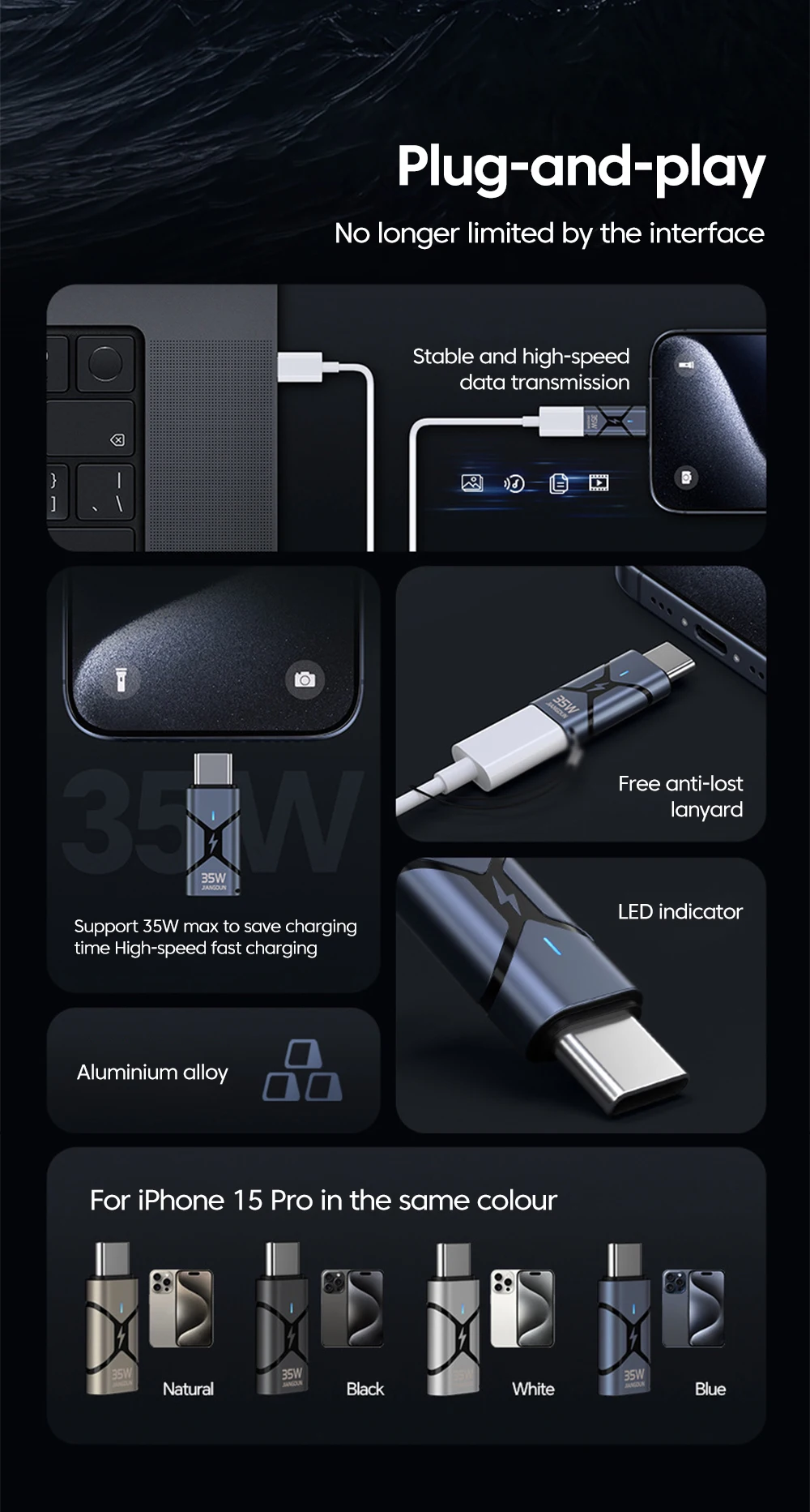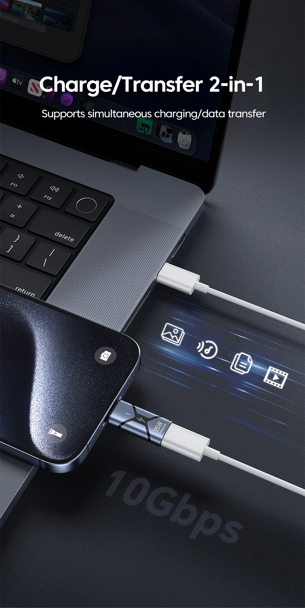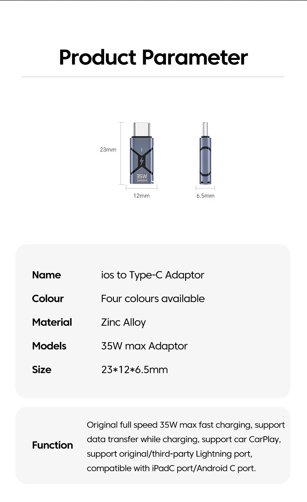 Adaptador Elough Lightning a tipo C convertidor PD35W de carga rápida para adaptador de cable de datos iphone 15 16