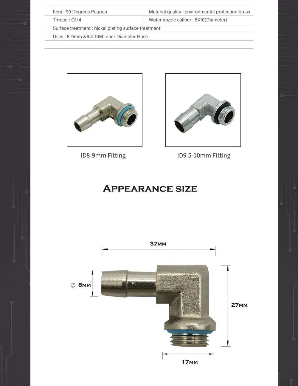 Comprar Adaptador en ángulo, accesorio de manguera, 90 grados, G1/4 '', 6x9mm, 8x10mm, ID, 8-10mm, tubo, PC, refrigeración por agua, funda de ordenador DIY, 1 piezas