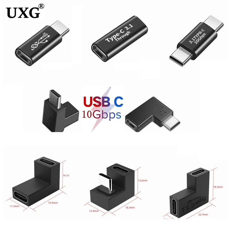 Comprar Adaptador en forma de U para Huawei y Xiaomi, convertidor de 90 grados, USB 3,1, 10gbps, tipo C, macho a hembra, OTG, acoplador