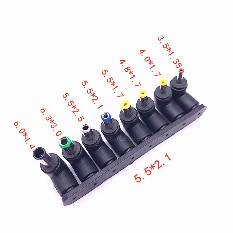 Este adaptador de corriente se puede enchufar directamente a 5,5mm (diámetro exterior) X 2,5mm (diámetro interior) o 5,5mm (diámetro exterior) X 2,1mm (diámetro interior) conector de alimentación ordinario para conversión.