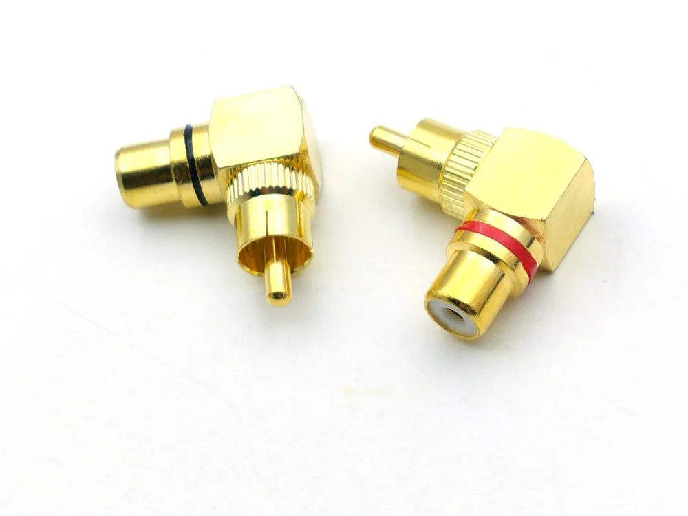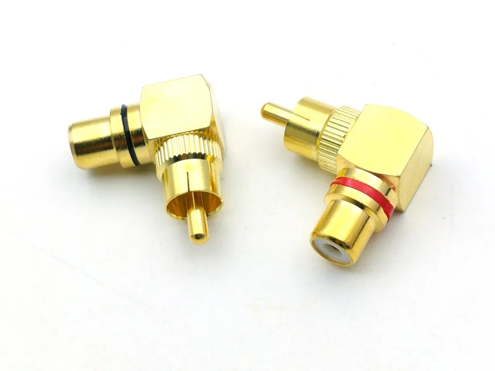 Comprar Adaptador de enchufe de ángulo recto RCA chapado en oro, conector macho a hembra de 90 grados, 20 Uds.
