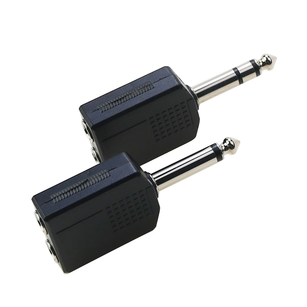 2 uds 1/4" mono/estéreo Audio Jack adaptador de enchufe macho a hembra 6,35 MM 6,5 MM doble conector auriculares micrófono Y divisor convertidor