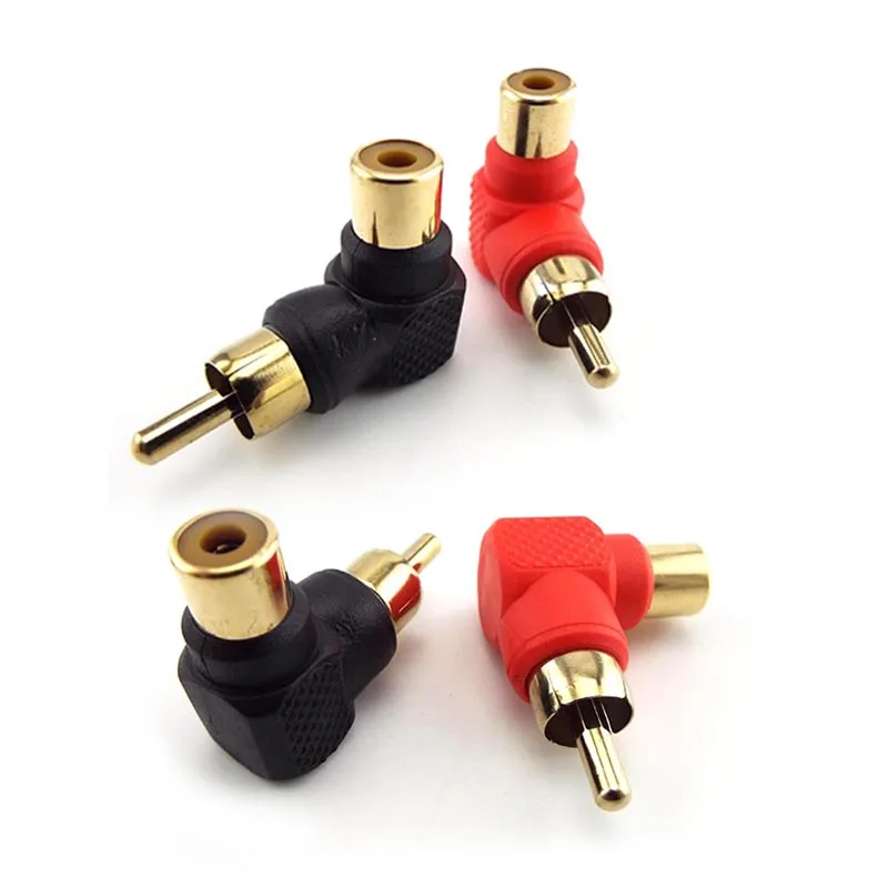 Adaptadores de enchufe de conector de ángulo recto RCA macho a hembra de 90 grados M/F adaptador de Audio de 90 grados chapado en oro