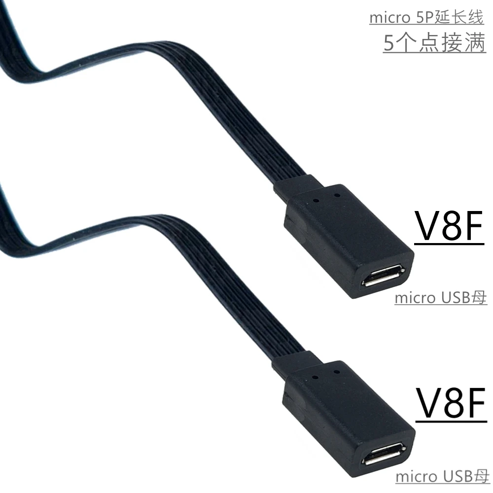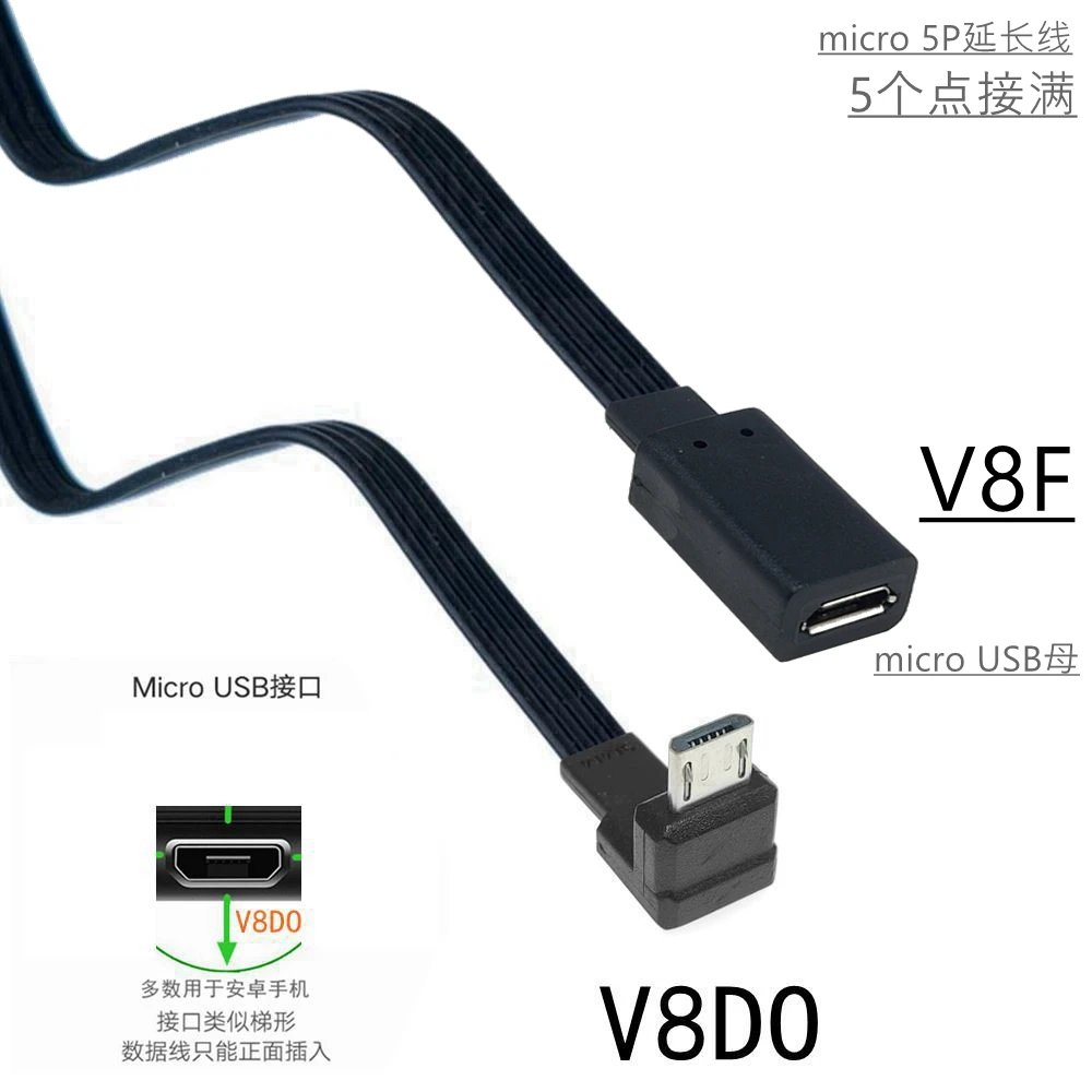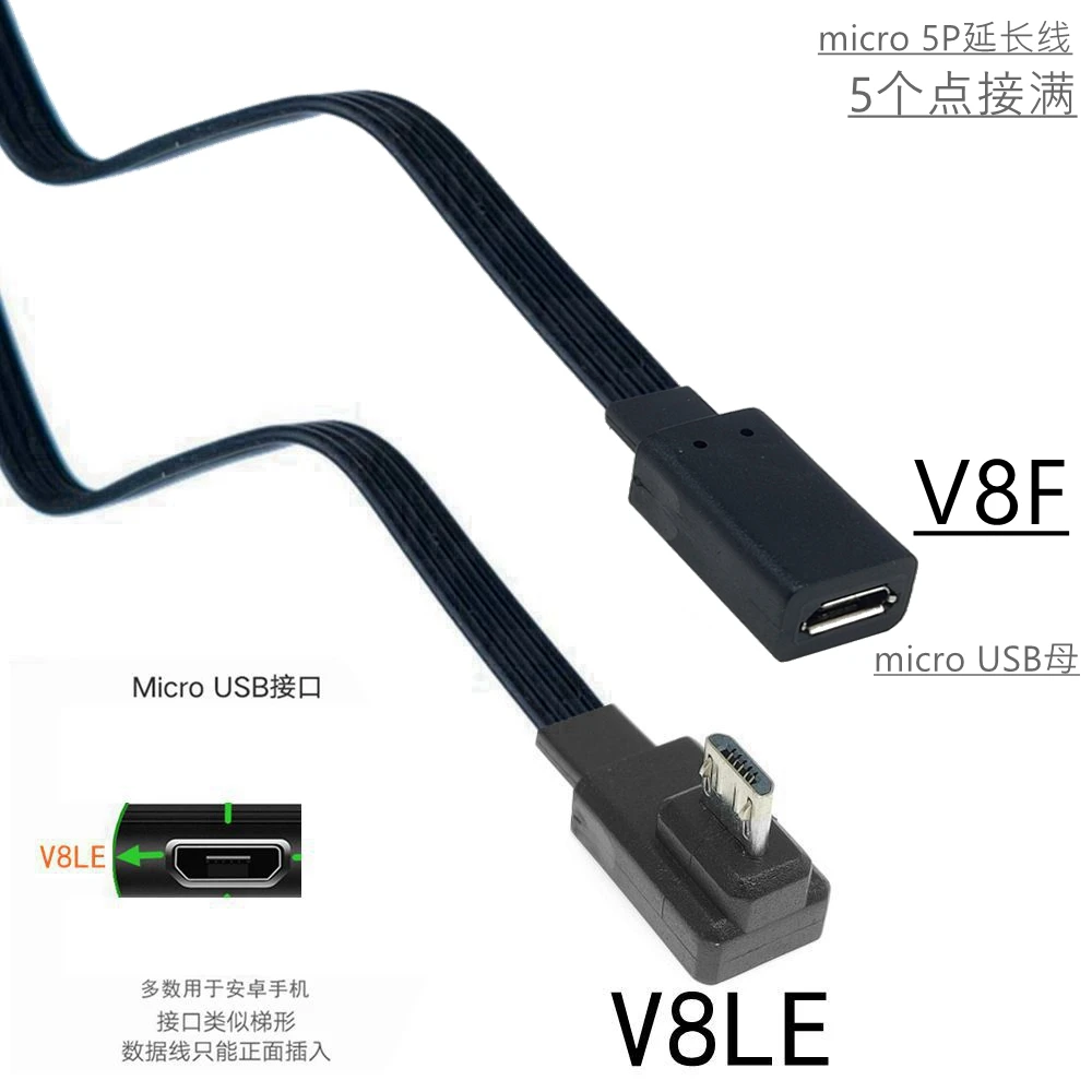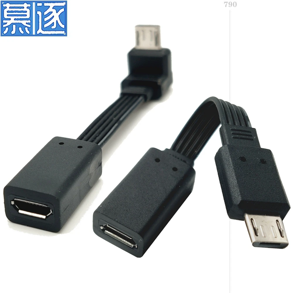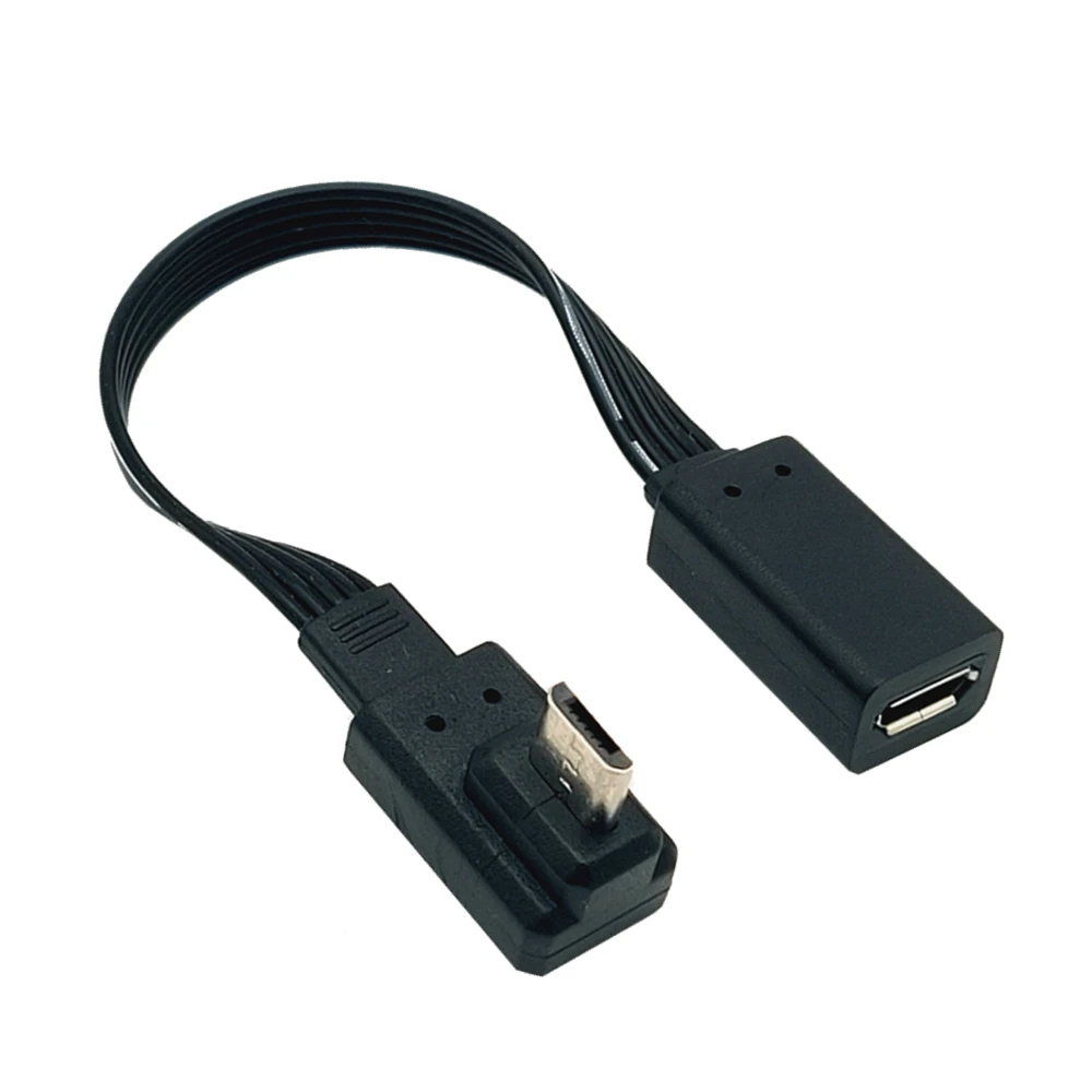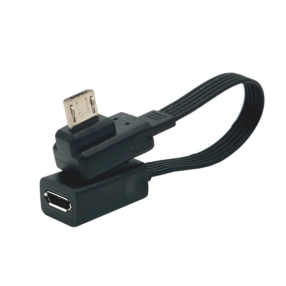 Adaptador de enchufe de extensión Micro USB 2,0 de 5 pines macho a hembra M a F, enchufe largo de 90 °, ángulo izquierdo y derecho, 5-100CM