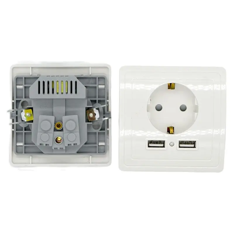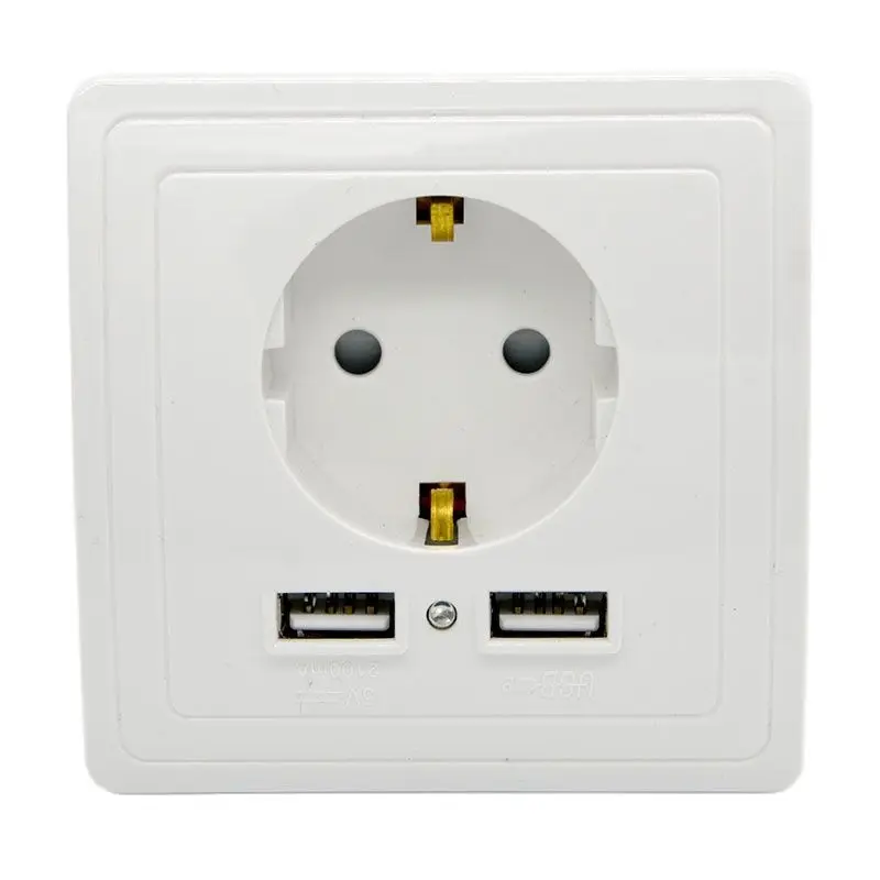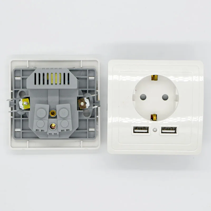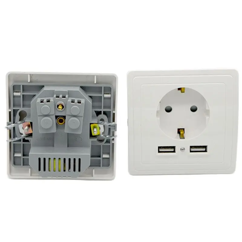 Enchufe de pared europeo con doble USB estándar alemán panel de enchufe estándar europeo