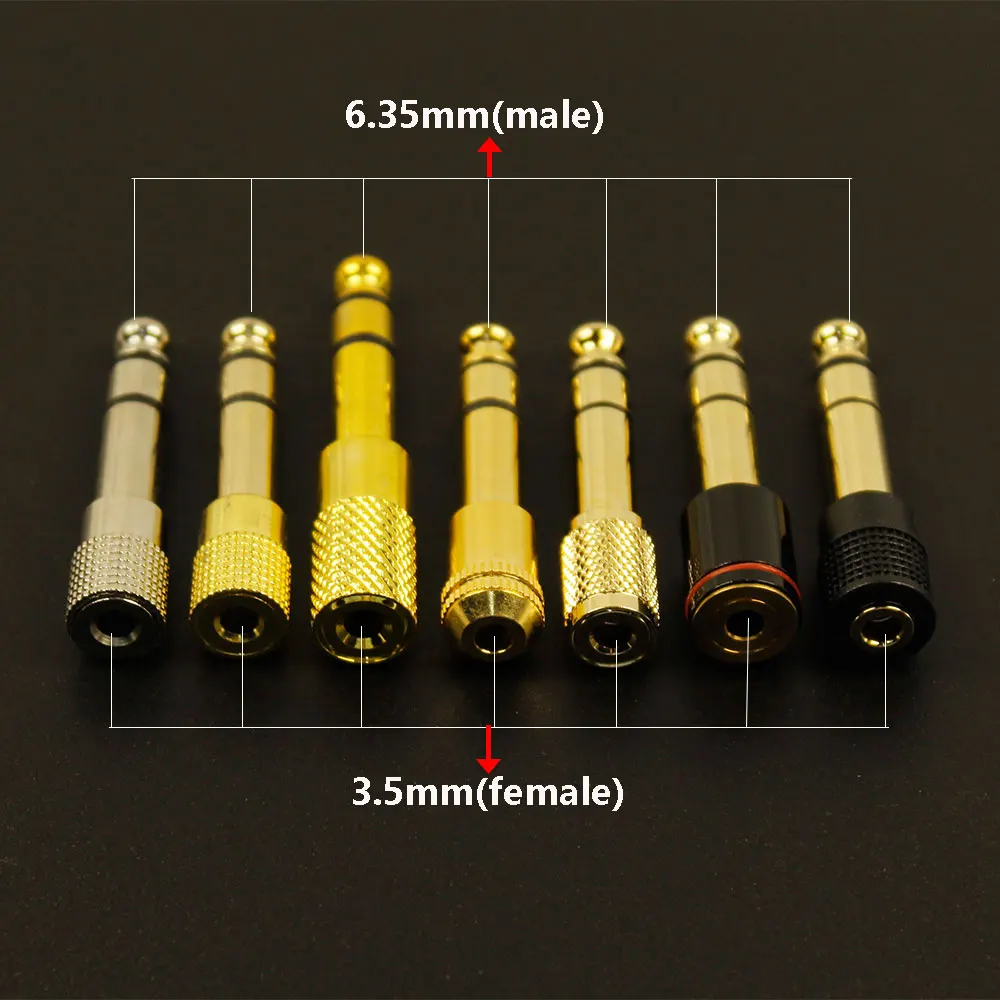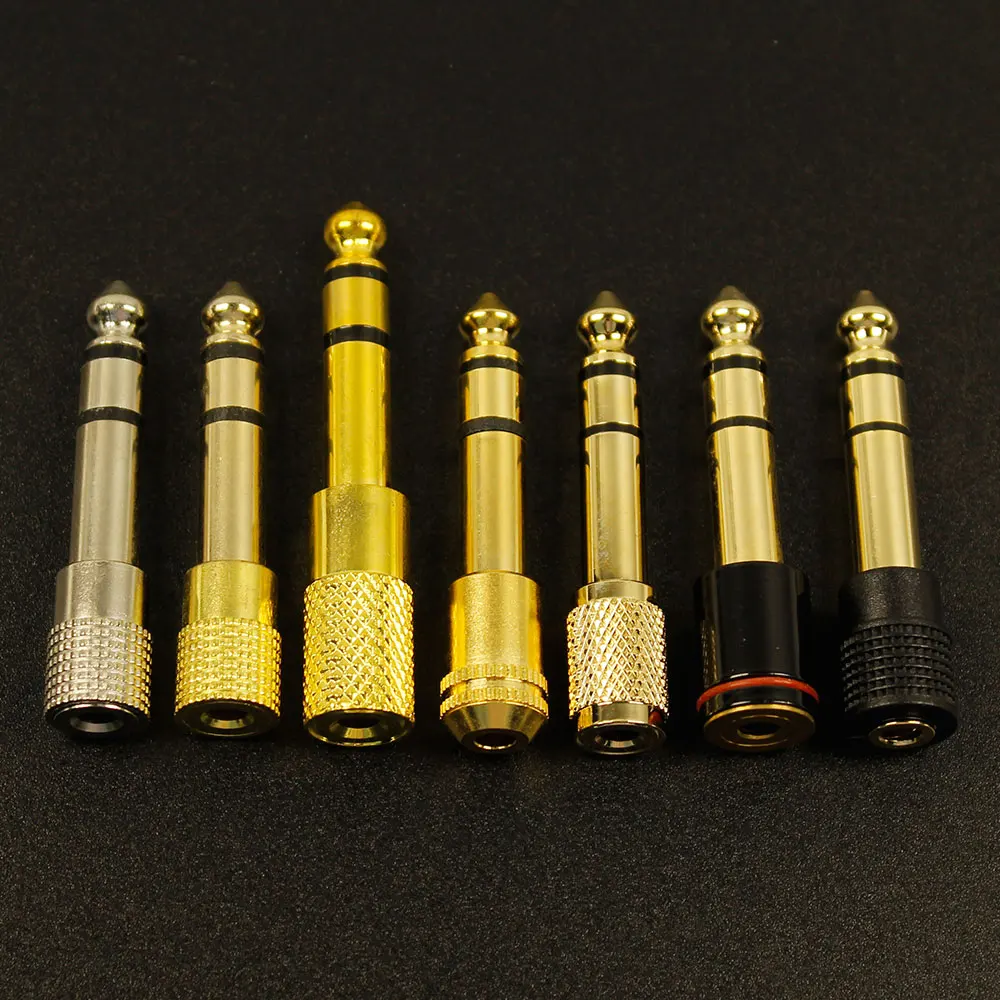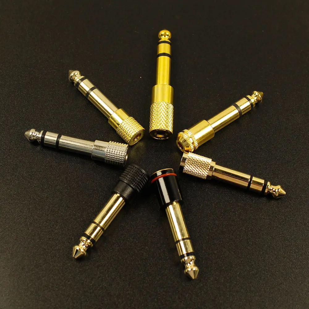 Adaptador de enchufe de audio portátil, duradero, dorado, plateado, 6,35, macho a 3,5, hembra, Jack, adaptador de auriculares, terminales