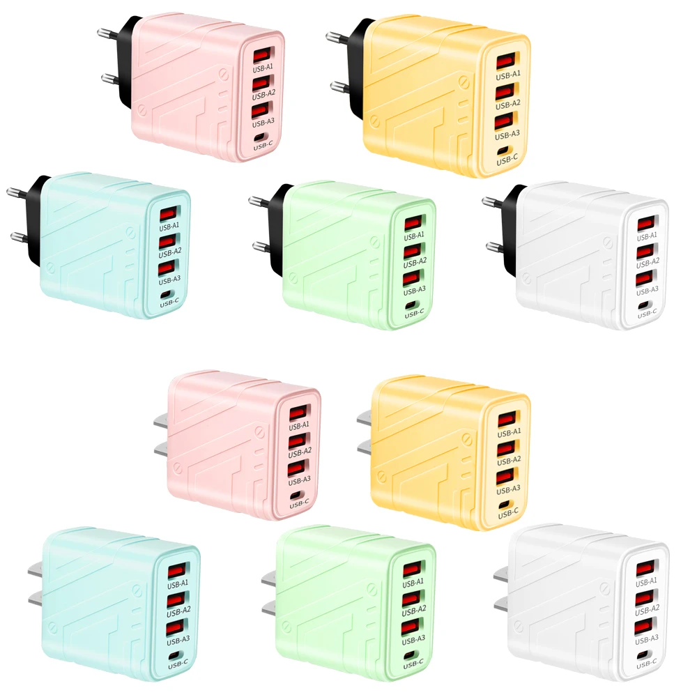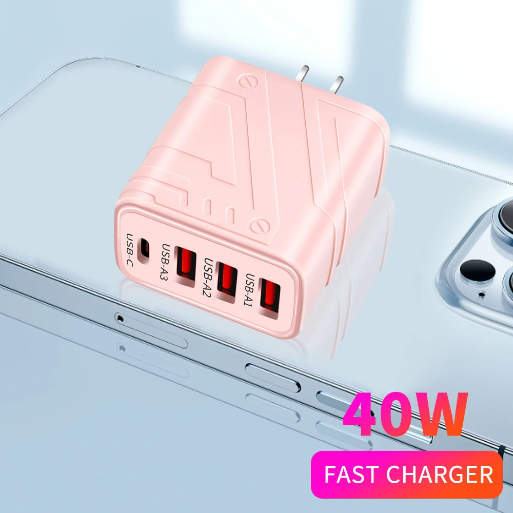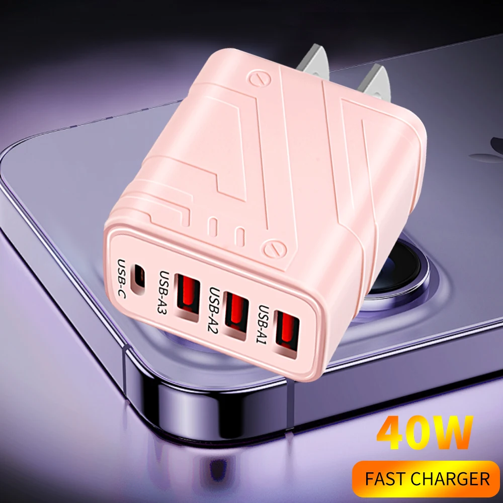 40W 3USB PD tipo C carga súper rápida tableta portátil carga rápida 3,0 UE/EE. UU. Adaptador de enchufe para iPhone 15 Max Xiaomi Samsung Huawei