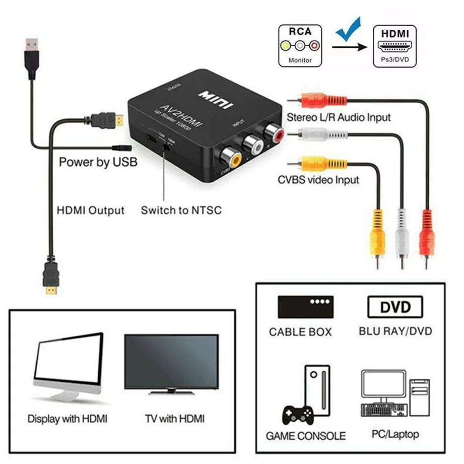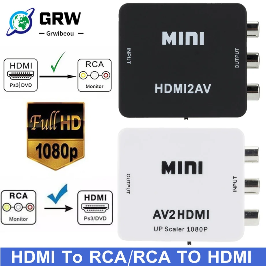 Comprar Adaptador escalador HD 1080P HDMI a AV convertidor compuesto de vídeo HDMI a RCA CVSB L/R Video Mini HD2AV AV a HDMI Adaptador convertidor