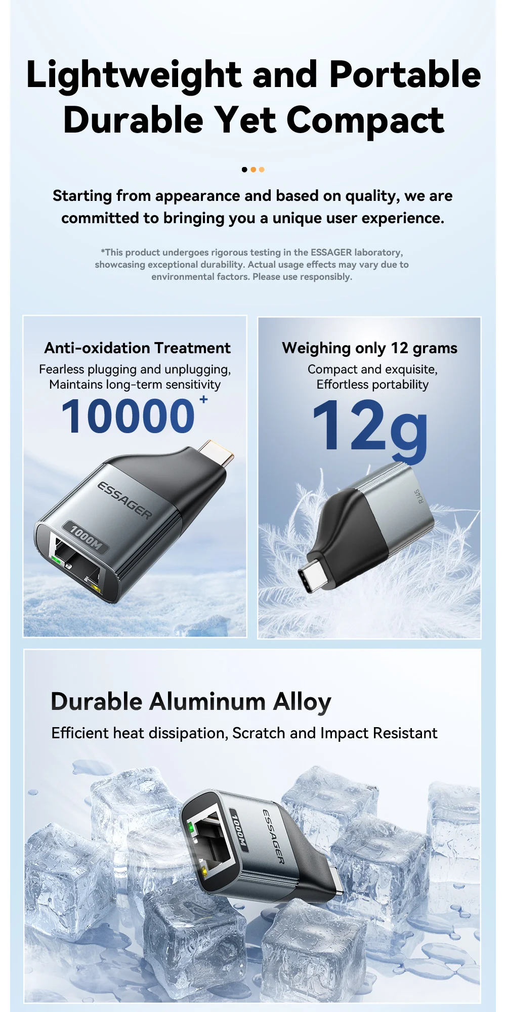 Adaptador Essager tipo C a Ethernet, adaptador Gigabit de alta velocidad RJ45 a tipo c de 100/1000Mbps para MacBook, portátil, tarjeta de red con cable