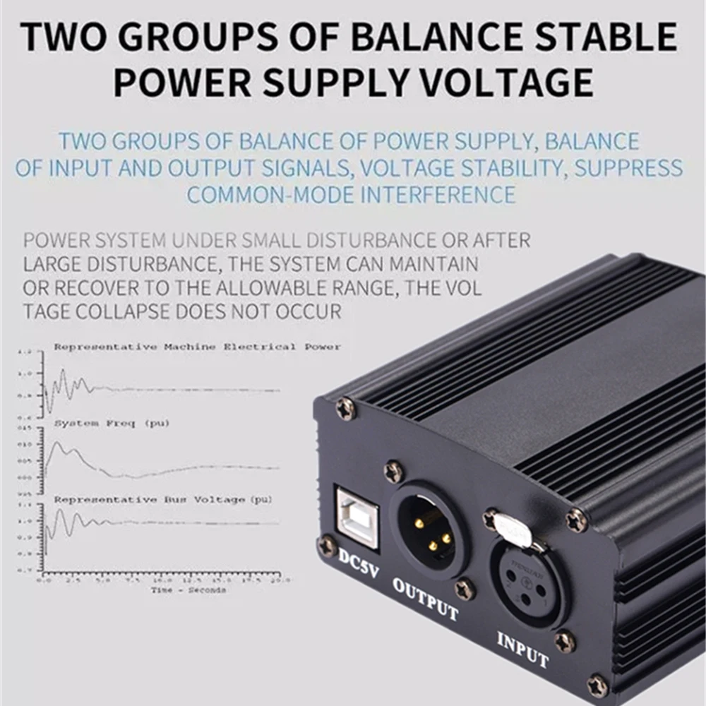 Fuente de alimentación equilibrada de 48V, fuente de alimentación estable y fuerte, para que el micrófono de condensador se pueda utilizar sin problemas