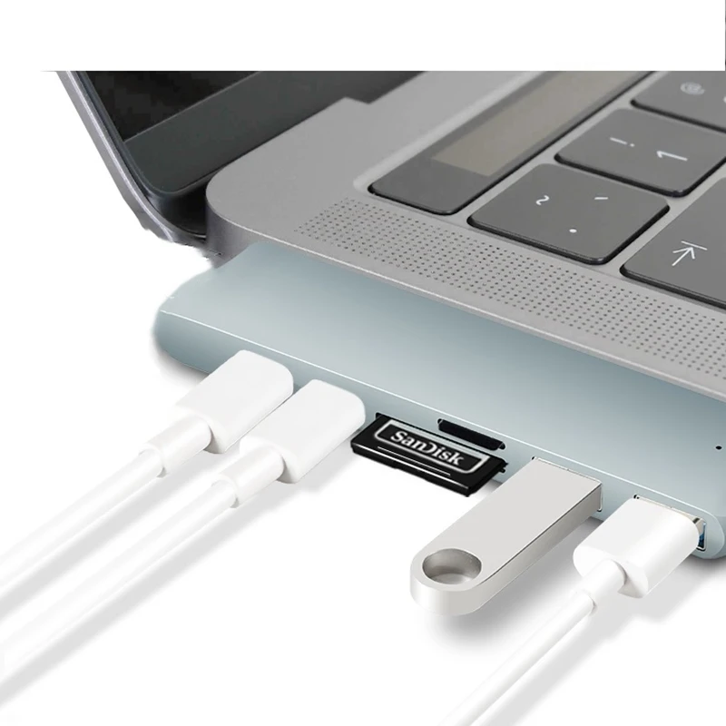 Adaptador de concentrador USB-C 6 en 1---- un concentrador portátil bien diseñado con la selección de puertos que ofrece.Esta característica proporciona un funcionamiento suave y más seguro de los dispositivos conectados, convirtiendo fácilmente un puerto USB tipo C en tres puertos USB 3.0, una ranura para tarjeta SD y una tarjeta Micro SD.Adaptador de concentrador USB tipo C Expande a múltiples puertos