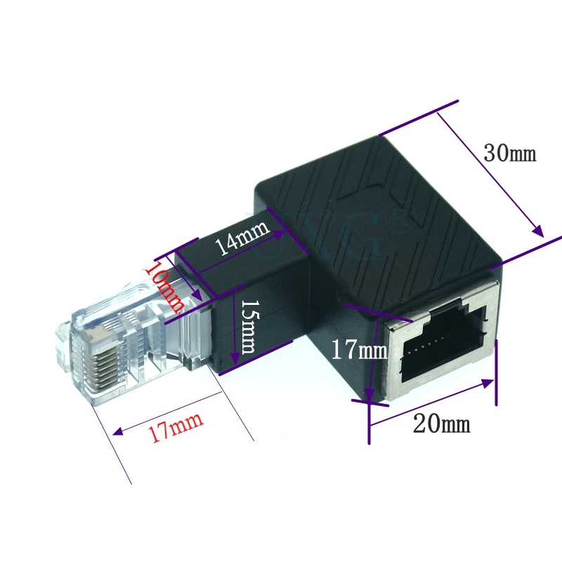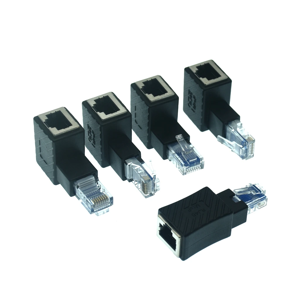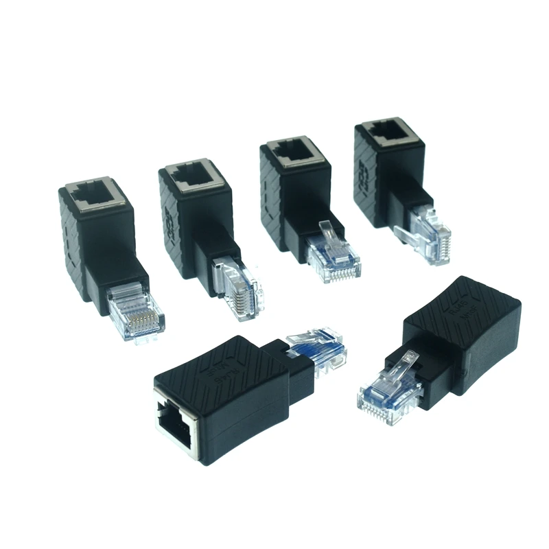 Cabezal recto 90 grados arriba y abajo, adaptador Ethernet CAT5e / CAT6 de curva izquierda y derecha, Ethernet hembra y RJ45 / 8p8c de 270 grados,