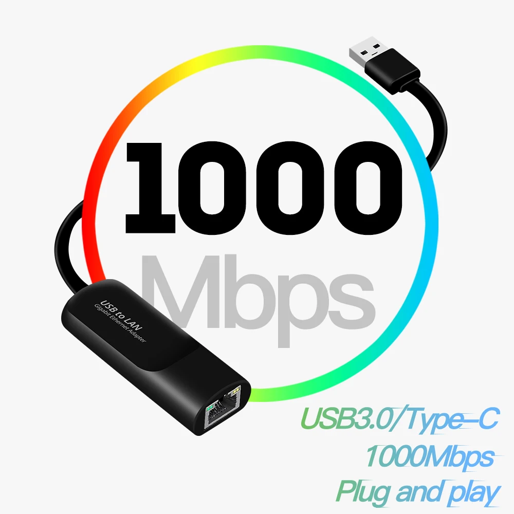 Comprar Adaptador Ethernet USB 1000 de 3,0 Mbps, tarjeta de red para PC, Macbook, Windows 10, ordenador portátil, SIN controlador