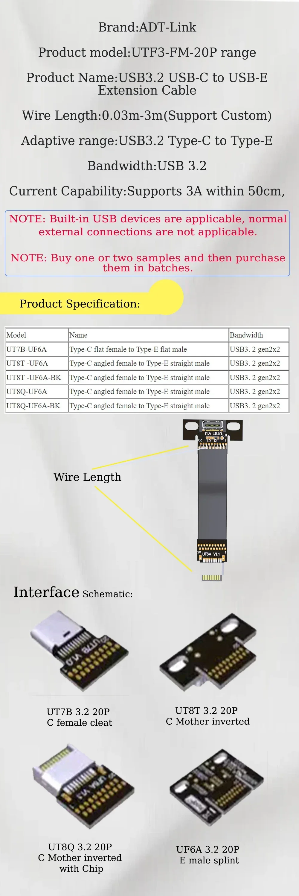 Comprar Adaptador de expansión interno USB 3,2 Gen2x2 tipo C hembra a tipo E macho Cable plano blindado adaptador de placa base ITX/ATX A4