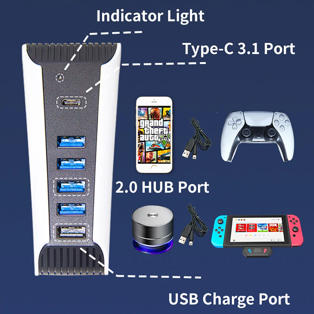 Hub USB para consola PS 5 PS5, adaptador de HUB expansor divisor USB2.0 de 1 a 5, 5 puertos para Play Station PS5, accesorios de host de juegos