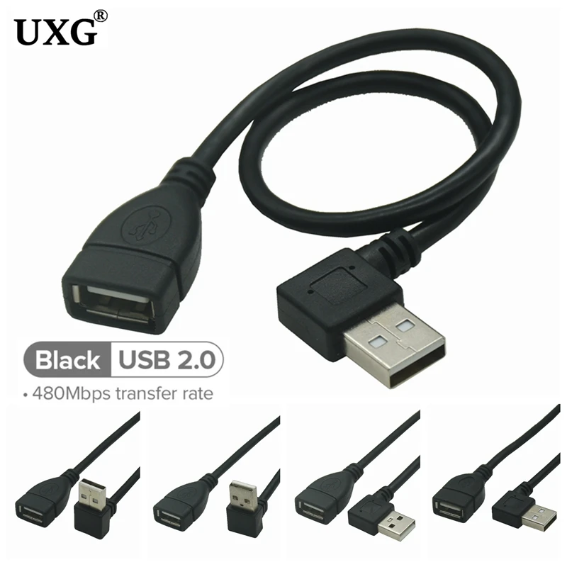 10cm 20cm USB 2,0 A macho a hembra 90 cable adaptador de extensión en ángulo USB2.0 macho a hembra derecha/izquierda/abajo/arriba cable negro