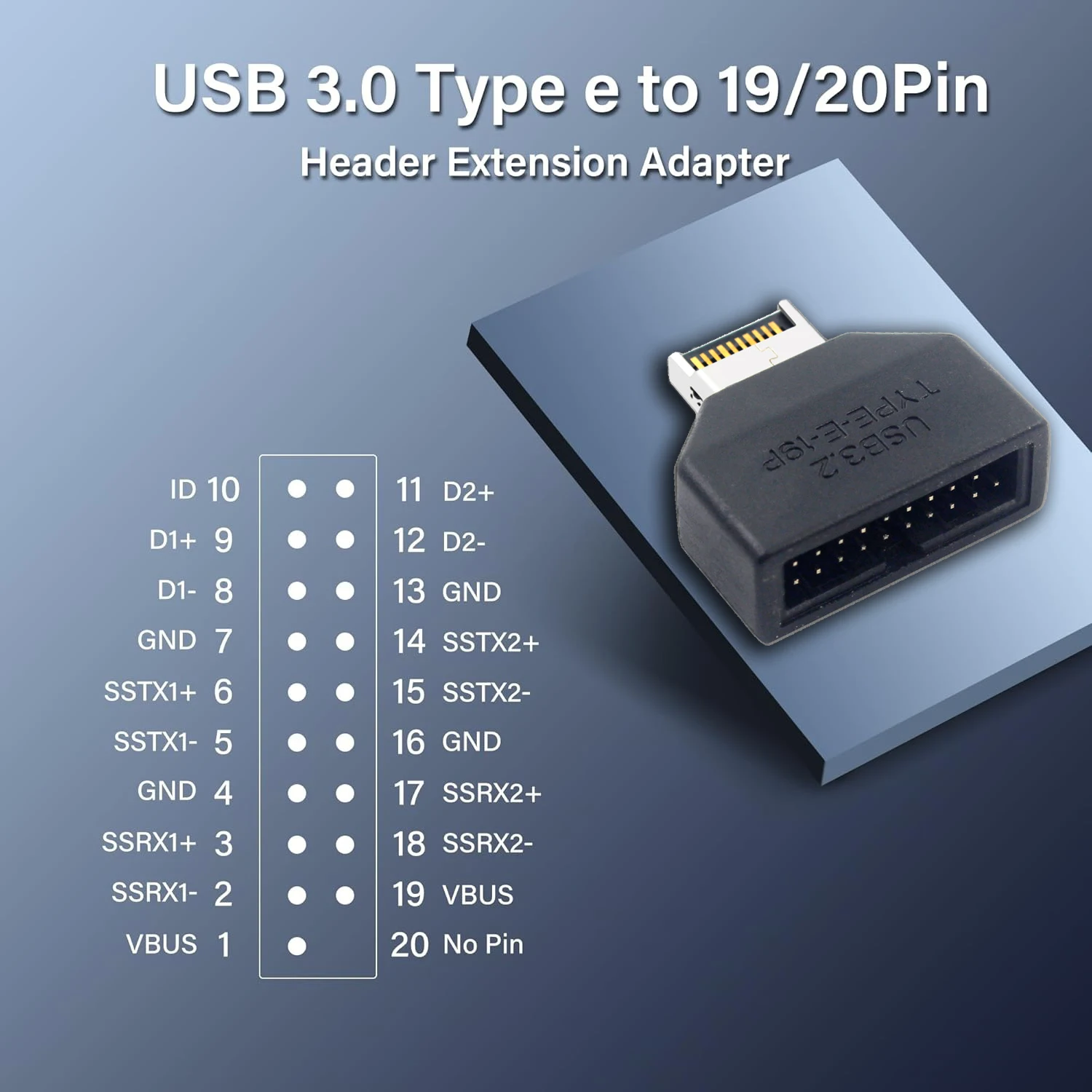 Comprar Adaptador de extensión de cabezal USB 3,0 tipo E, convertidor de Panel frontal de 19/20 pines, transferencia de datos de 5Gbps, Plug & Play para placa base de escritorio