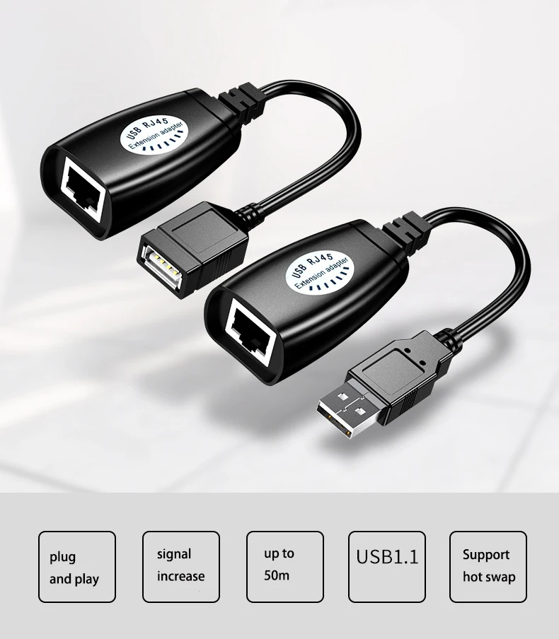 Adaptador de extensión de Cable USB a RJ45 LAN, extensor sobre Cat5e, Cable Ethernet Cat6, 30m, 50M, 150 pies, para ordenador portátil, PC, teclado, ratón - imagen 5