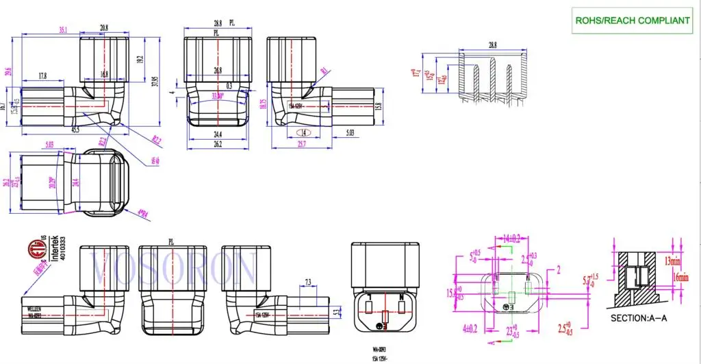 Comprar Adaptador de extensión de corriente IEC macho C14 a C13 hembra, 90 grados hacia arriba, ángulo recto, para PDU y UPS, 3 pines, 250V, 10A, conector IEC320