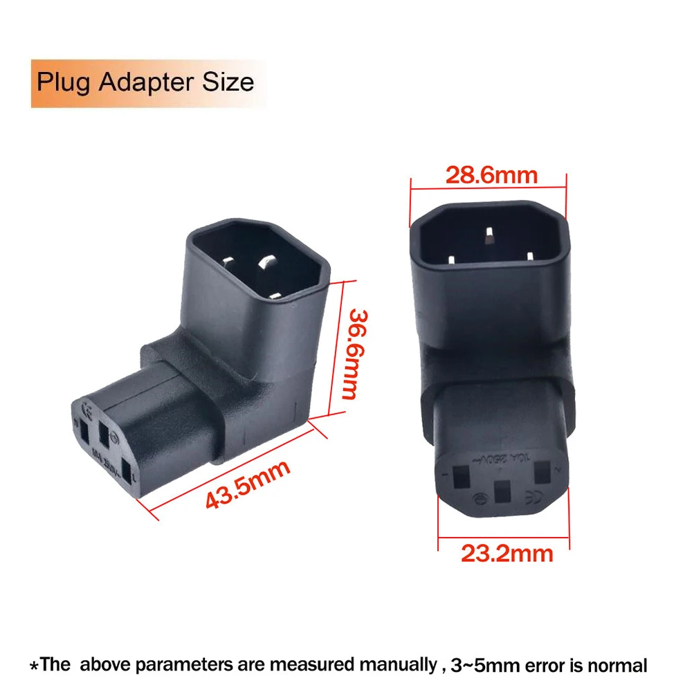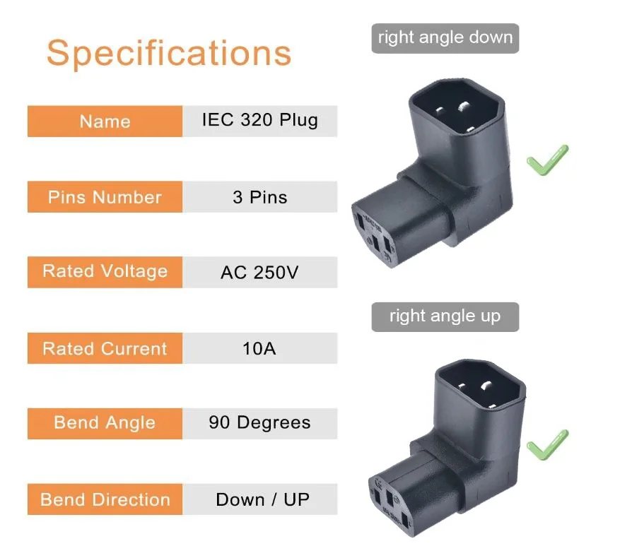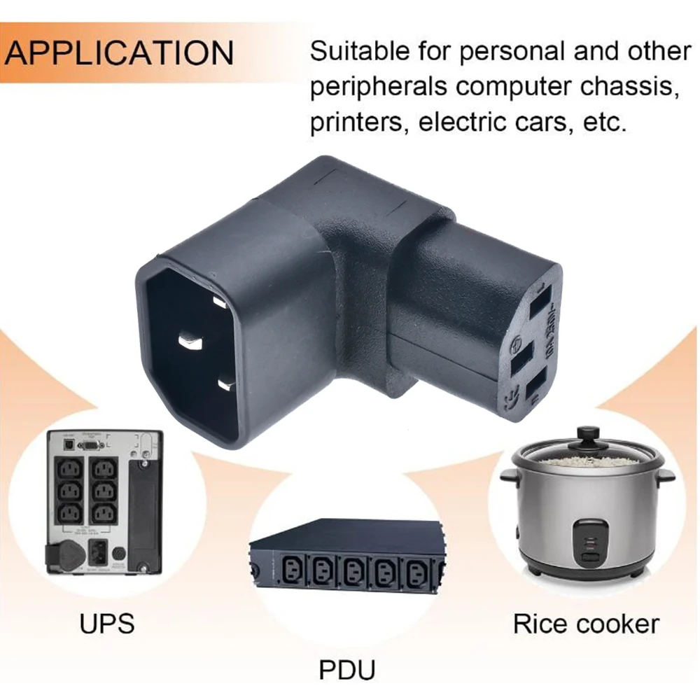 Comprar Adaptador de extensión de corriente IEC macho C14 a C13 hembra, 90 grados hacia arriba, ángulo recto, para PDU y UPS, 3 pines, 250V, 10A, conector IEC320