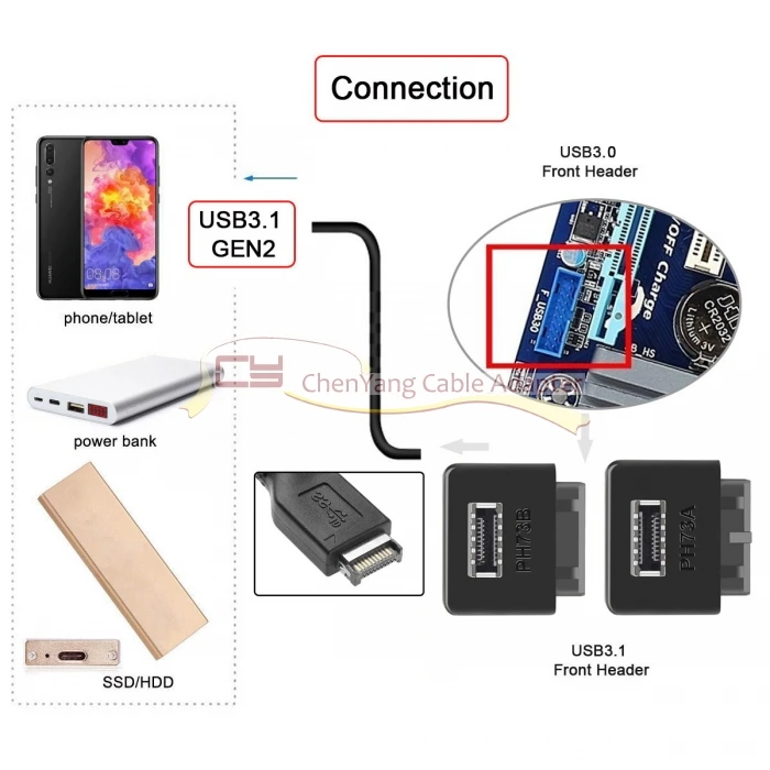 El adaptador es un convertidor para convertir el encabezado USB 3,0 disponible de una placa base en un encabezado USB 3,1.