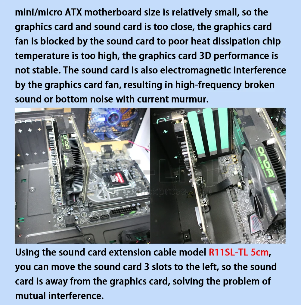 Función del producto: El cable de extensión puede mantener la tarjeta de red de la tarjeta de sonido lejos de la tarjeta gráfica, por lo que la disipación de calor de la tarjeta gráfica es buena y la tarjeta de red de la tarjeta de sonido puede reducir la interferencia, matando dos pájaros de un tiro. El cable de extensión No requiere fuente de alimentación.