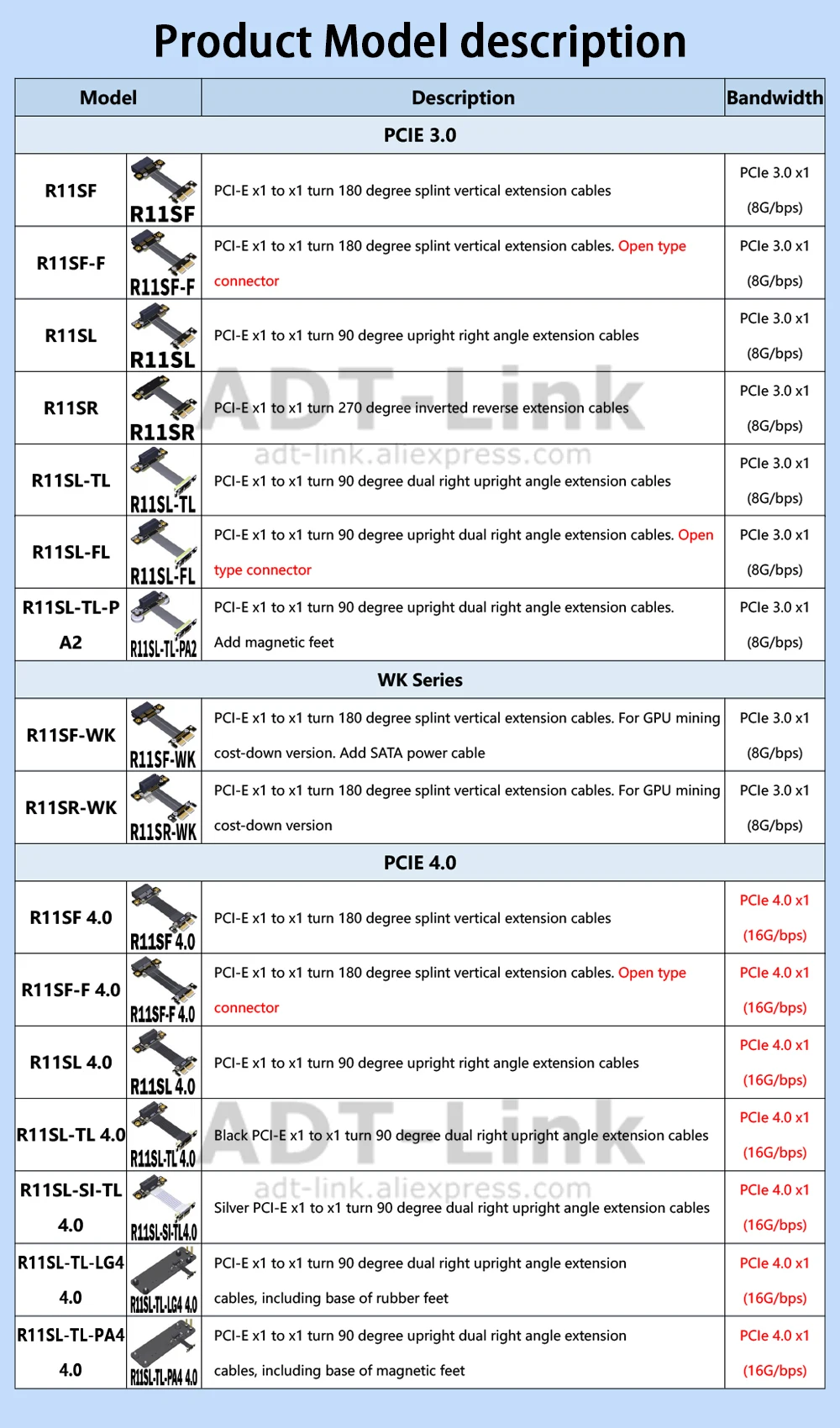 ,R11SL-TL-4.0, R11SL-TL-SI-4.0,R11SL-TL-PA4-4.0(PCIe4.0 X1 velocidad completa, 16G/BPS (máx.)