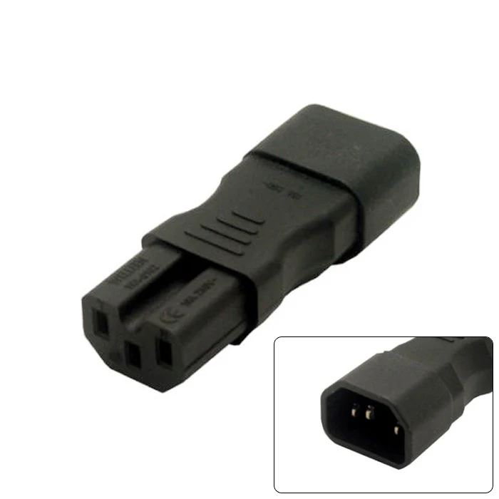 Adaptador de CA de alimentación IEC 320 C14 macho a hembra C15
